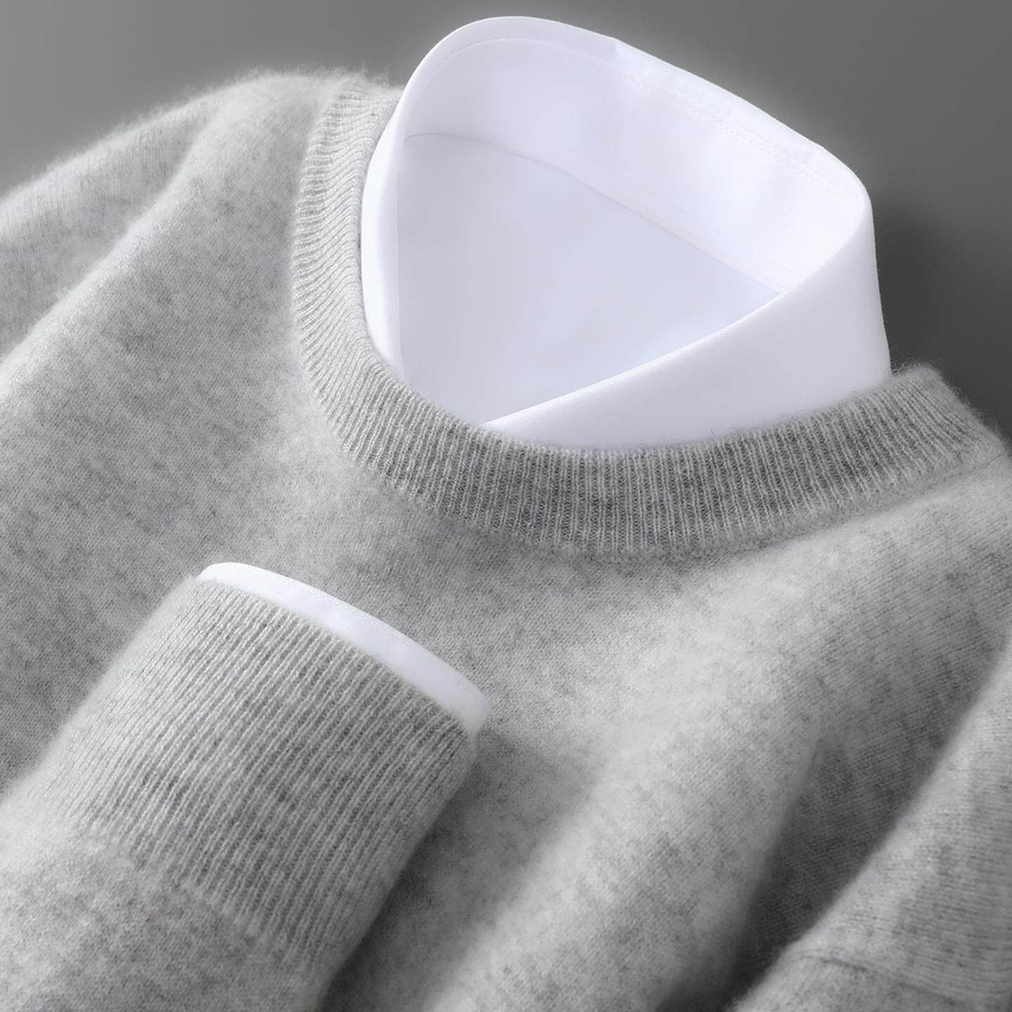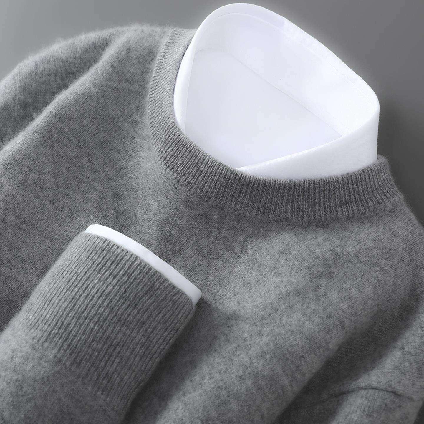 啄木鸟100%精纺羊毛衫男士圆领半高领毛衣秋冬薄款保暖羊绒打底衫