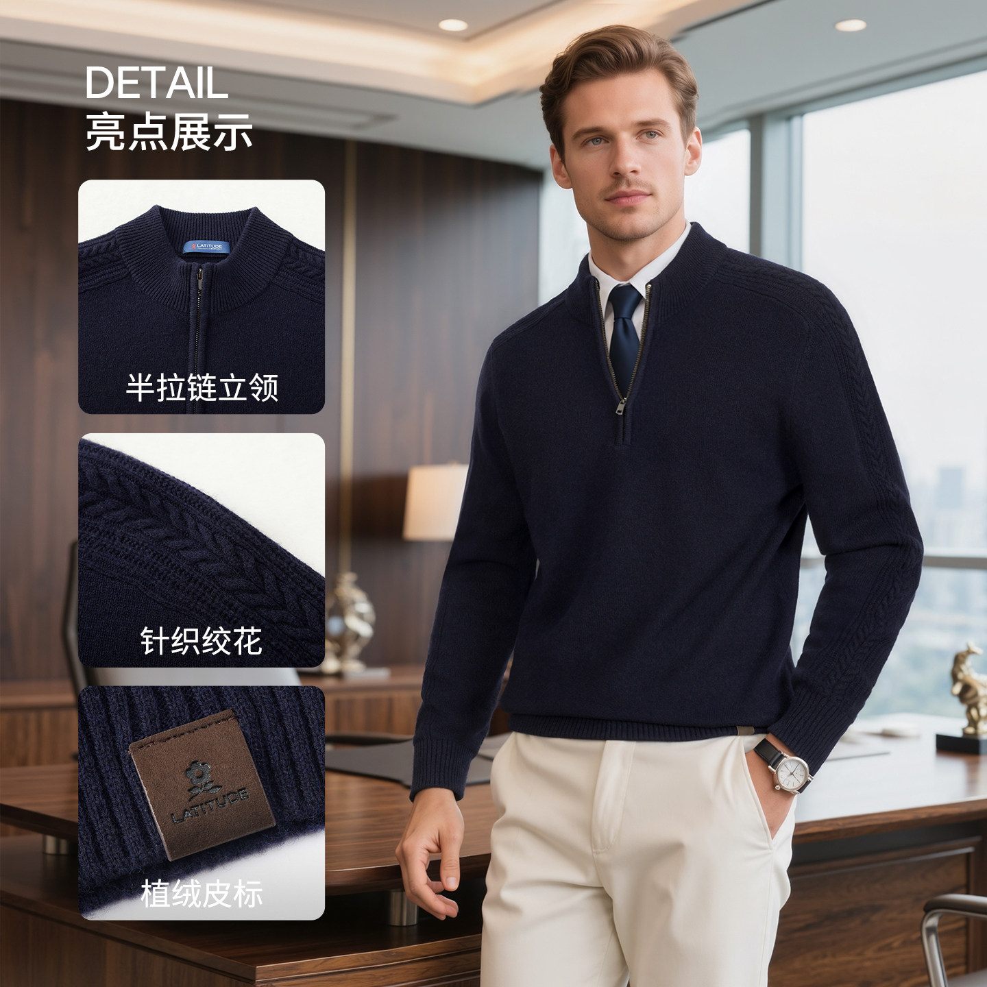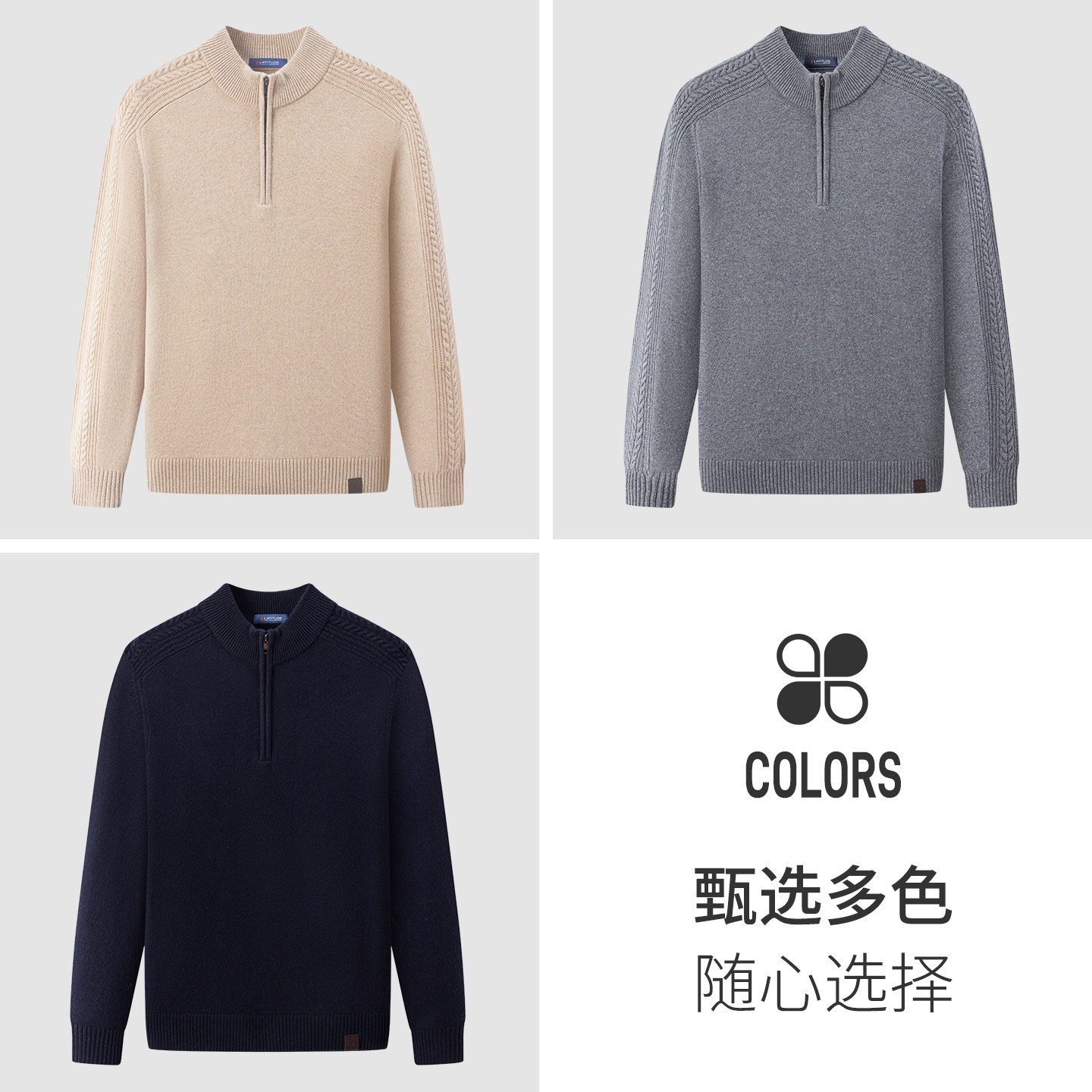 天猫[羊绒羊毛绞花]梦特娇男士羊绒羊毛衫25冬装拉链立领毛衣厚保暖J