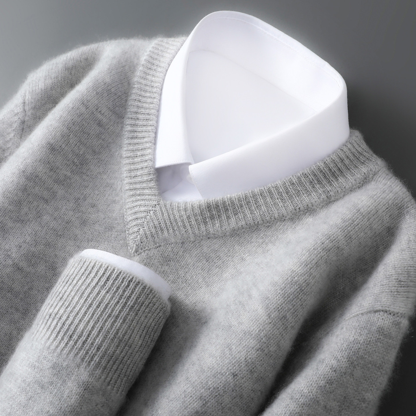 圣雪绒秋冬新款100%山羊绒男V领简约纯色商务休闲长袖套头针织衫
