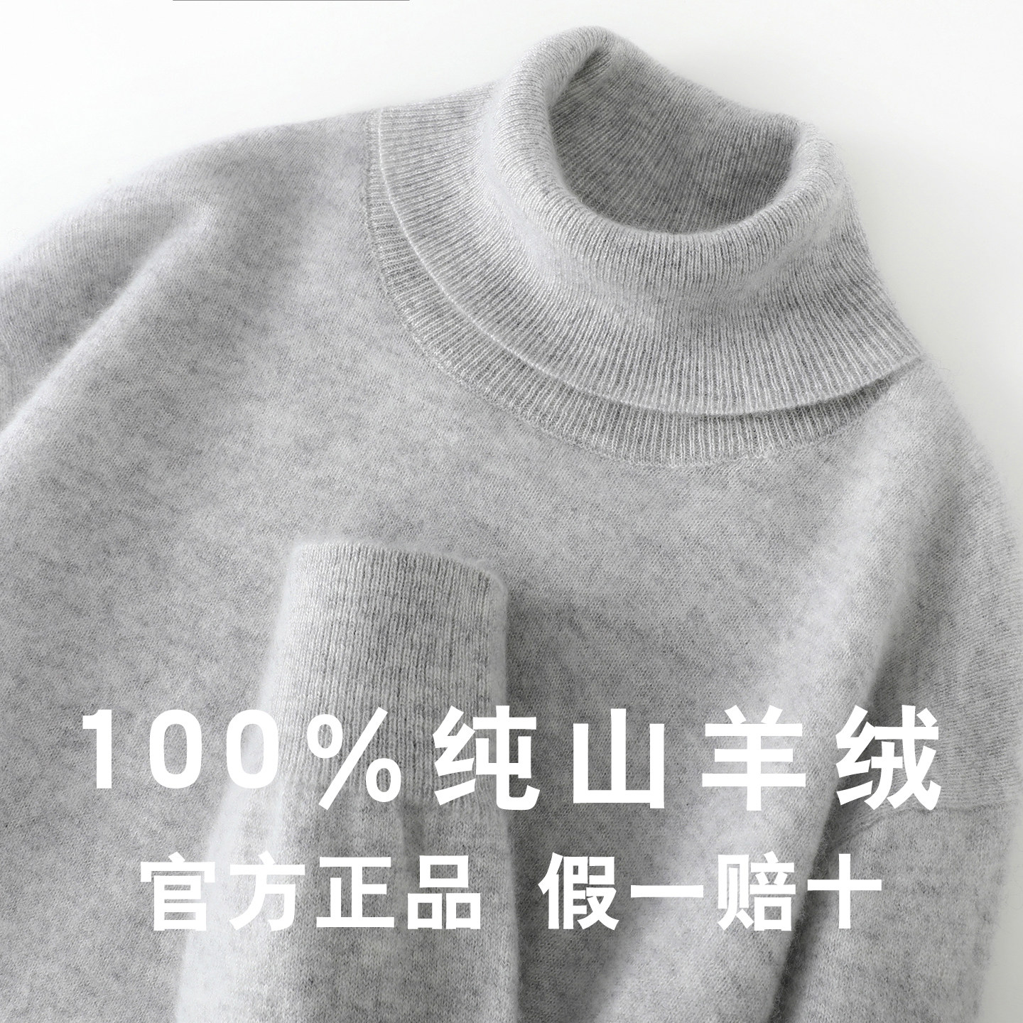 淘秋冬新款100%纯山羊绒衫男高翻领宽松针织毛衣男款套头保暖打底衫