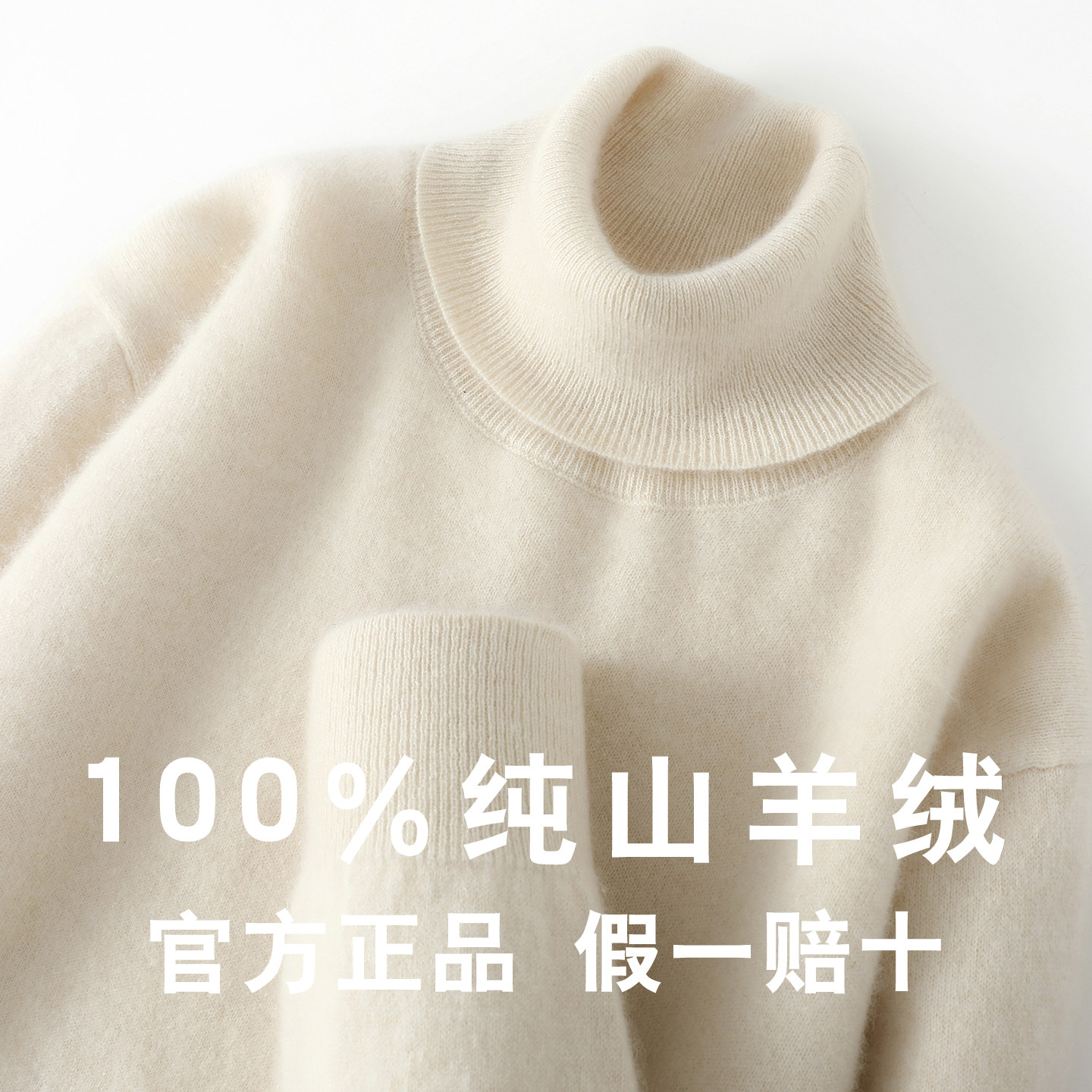 淘宝秋冬新款100%纯山羊绒衫男高翻领套头保暖毛衣男款宽松针织打底衫