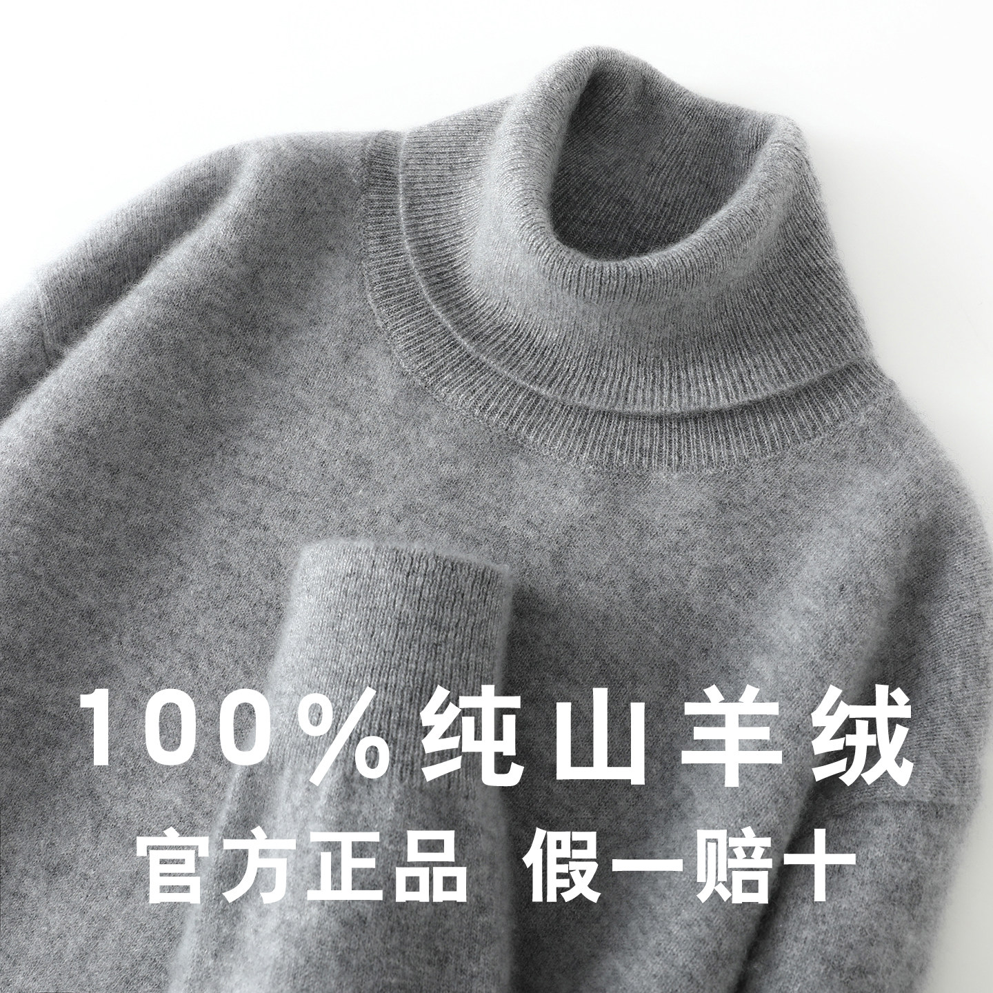 淘加厚100%纯羊毛衫男高翻领套头毛衣商务休闲秋冬季宽松针织打底衫
