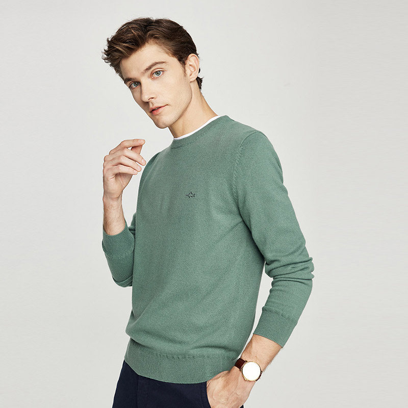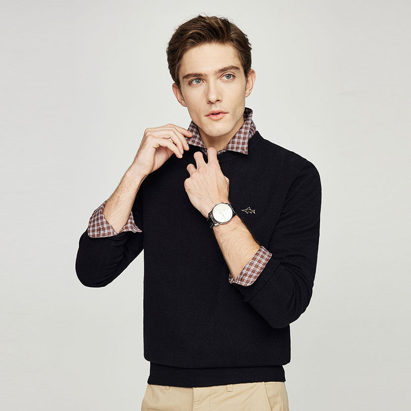 天GORNIA/格罗尼雅男士长袖针织100%山羊绒时尚圆领套头商务针织衫