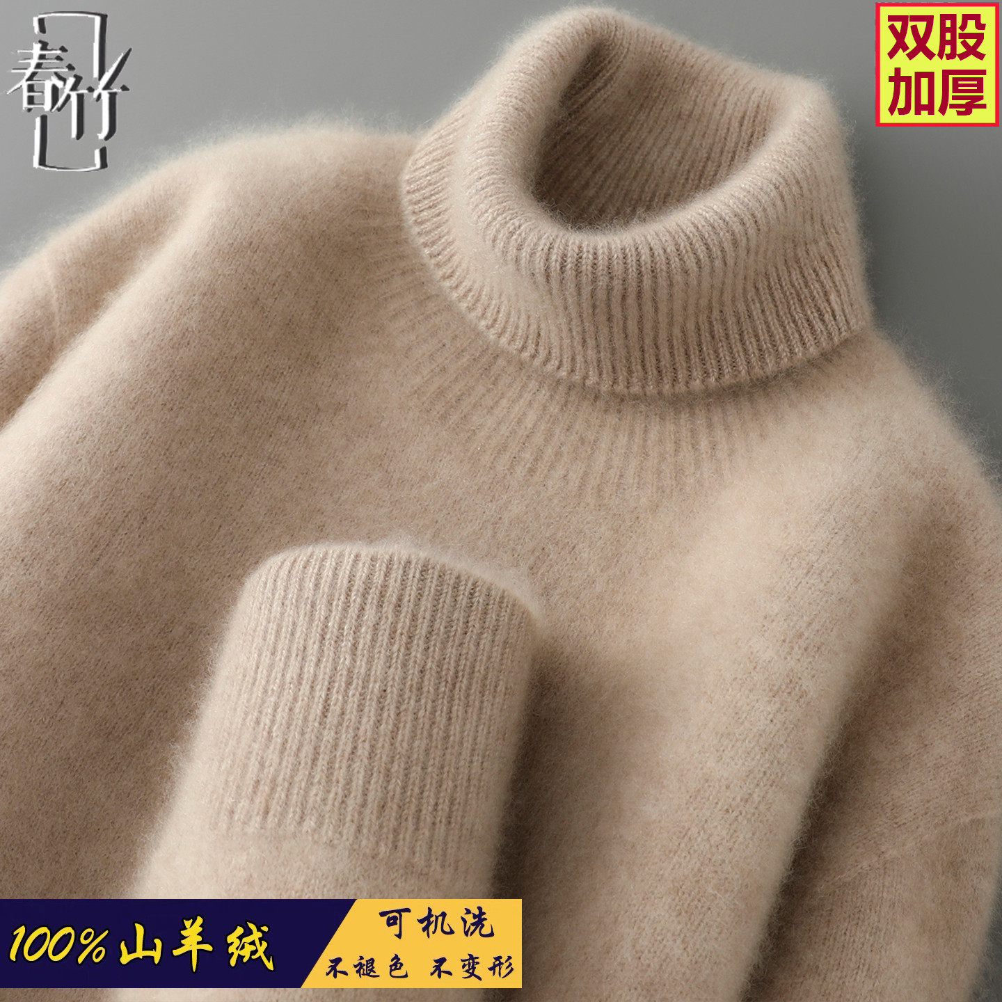 淘加厚100%纯羊毛衫男高翻领套头毛衣商务休闲秋冬季宽松针织打底衫