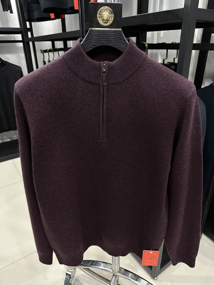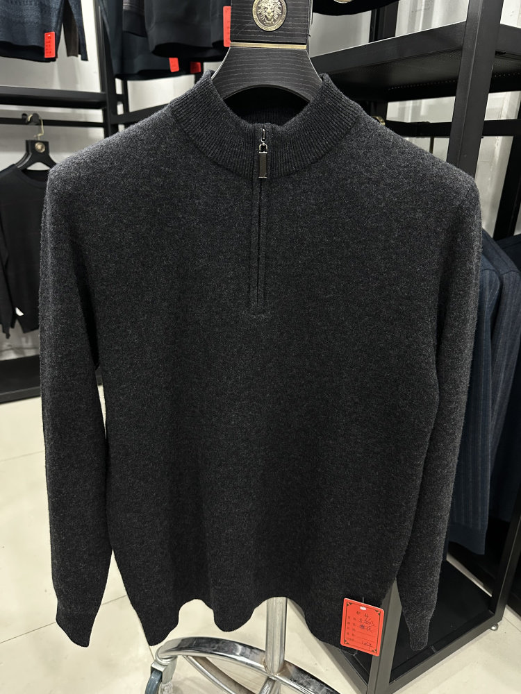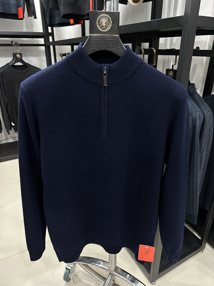[羊绒羊毛绞花]梦特娇男士羊绒羊毛衫25冬装拉链立领毛衣厚保暖J