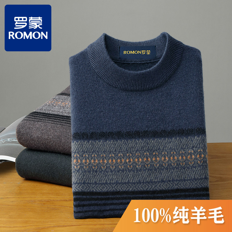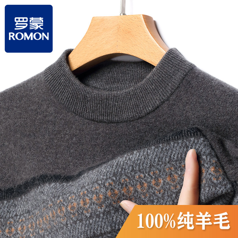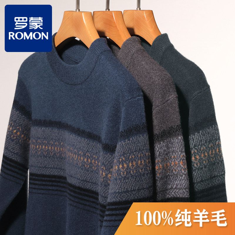 淘宝罗蒙100%纯羊毛衫男士半高领冬季加厚保暖毛衣爸爸装针织羊绒衫男