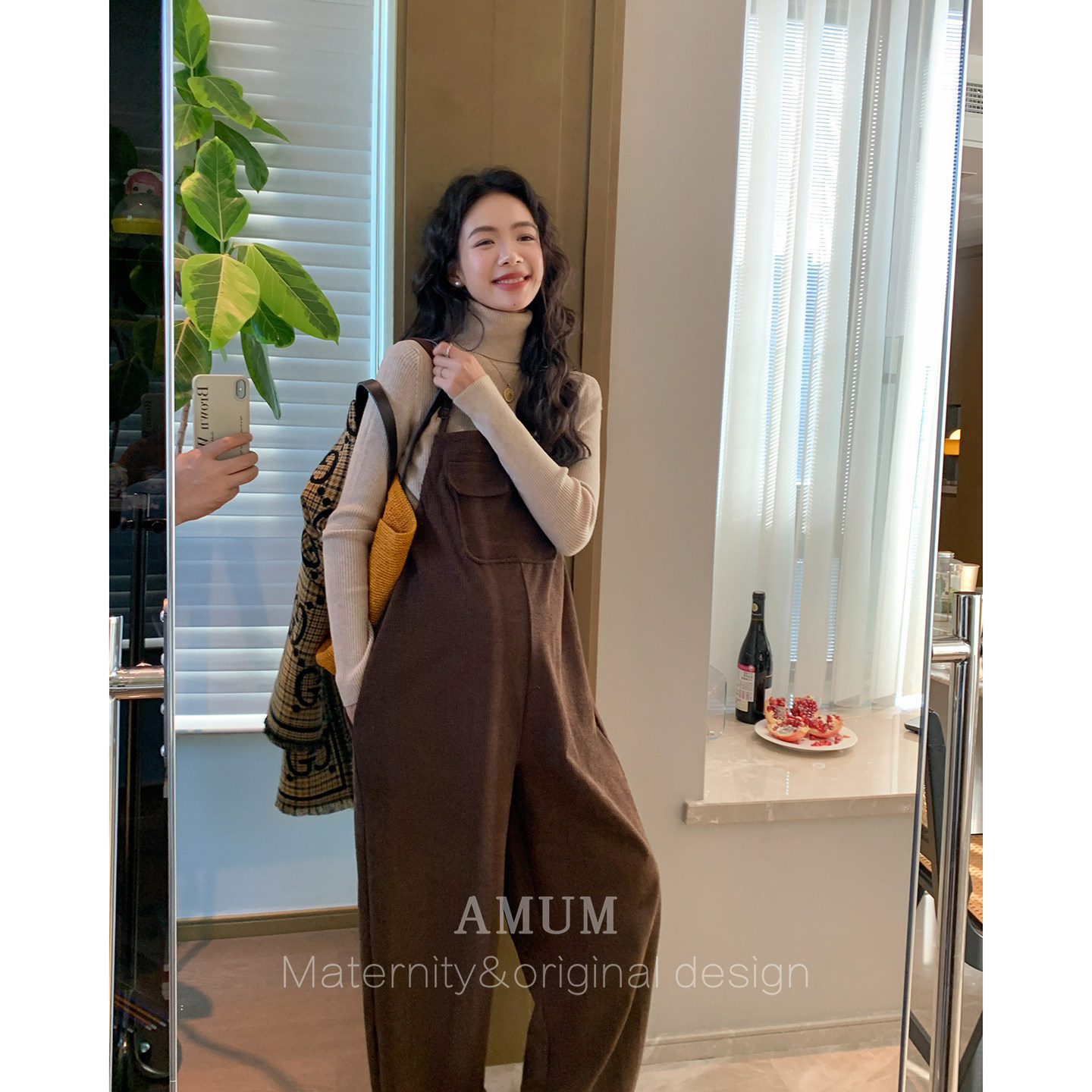淘◆AMUM孕妇装◆慵懒侘寂~复古秋冬软糯垂感加厚阔腿休闲背带裤