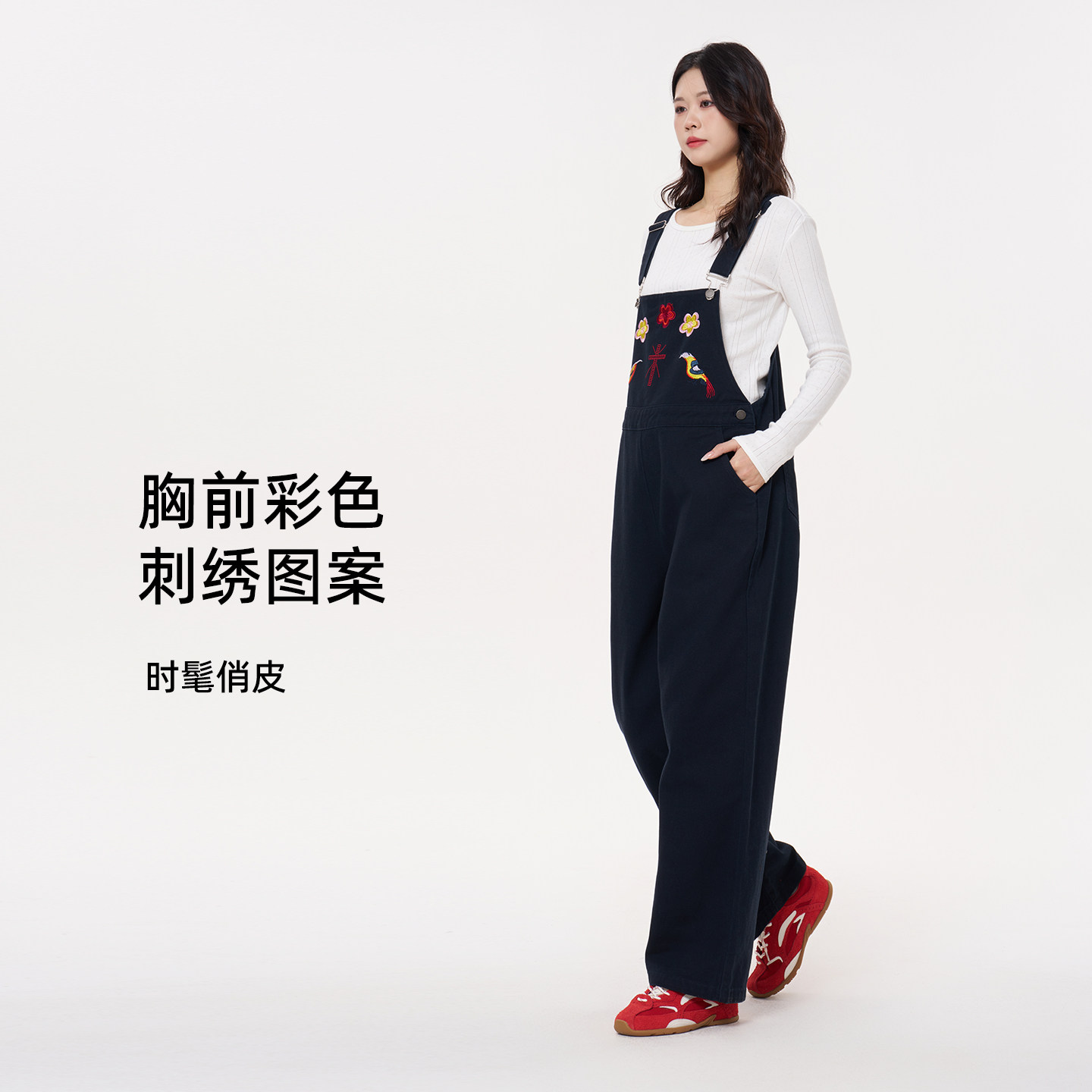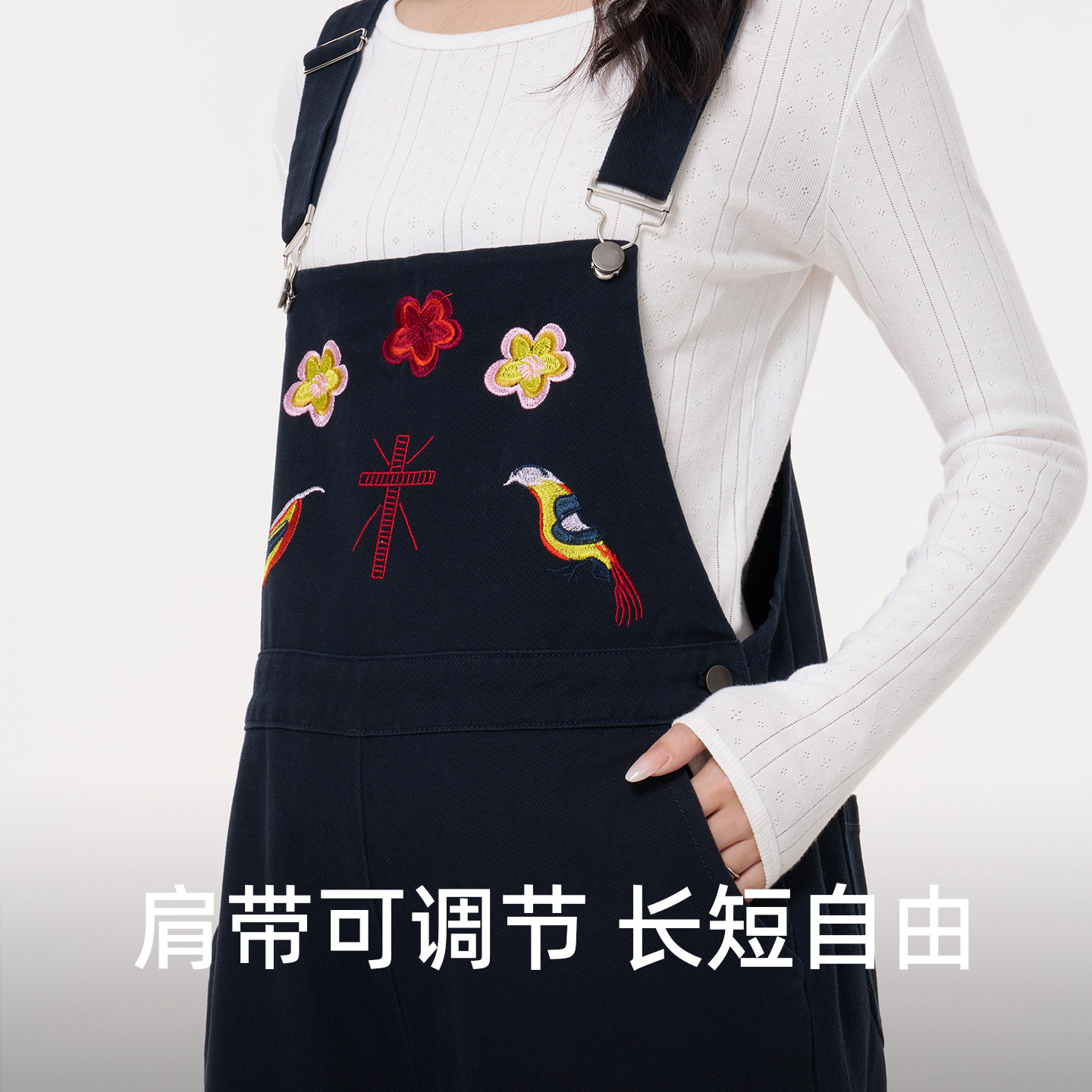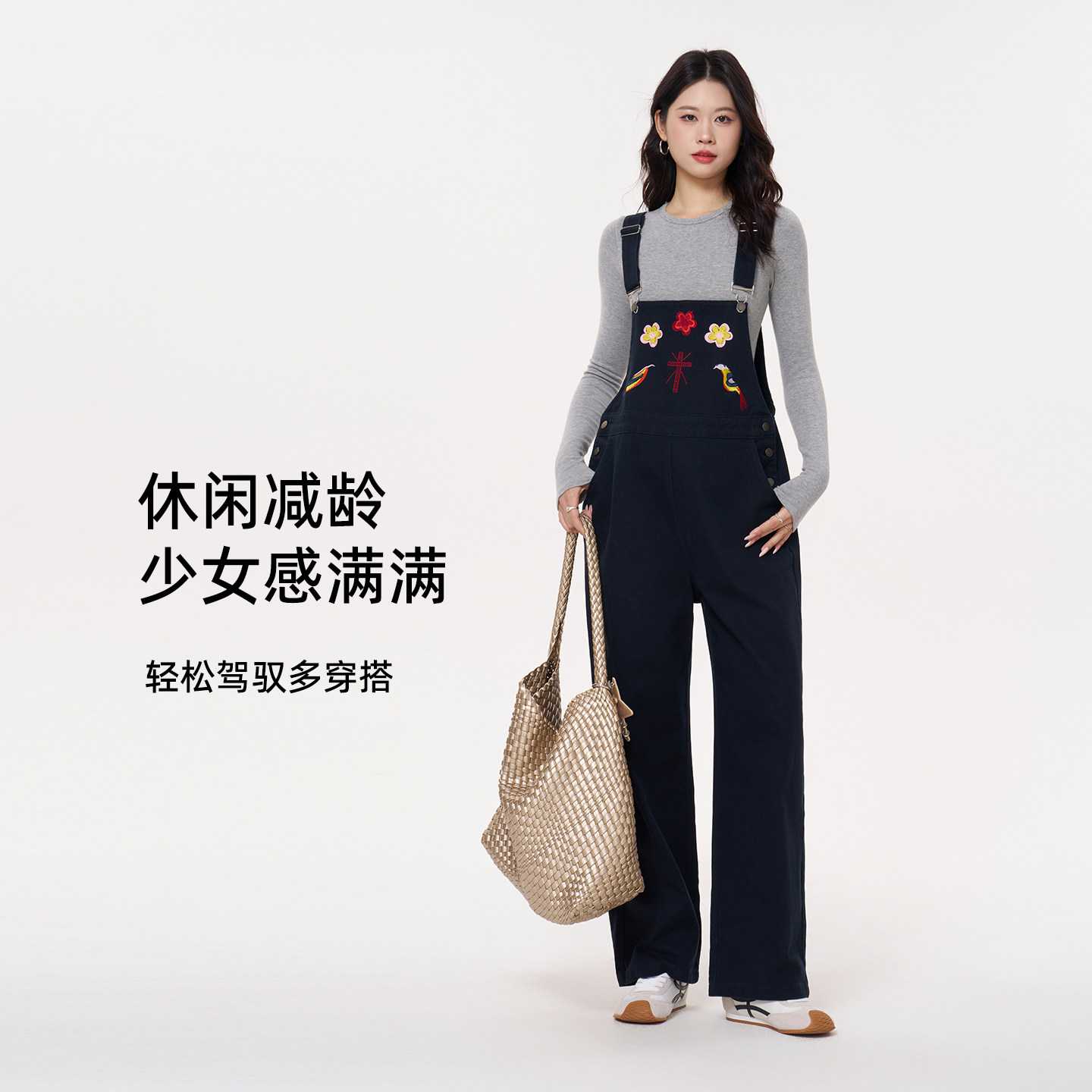淘宝MASANON孕妇背带裤春季外穿小个子牛仔裤不勒肚子刺绣阔腿裤春装