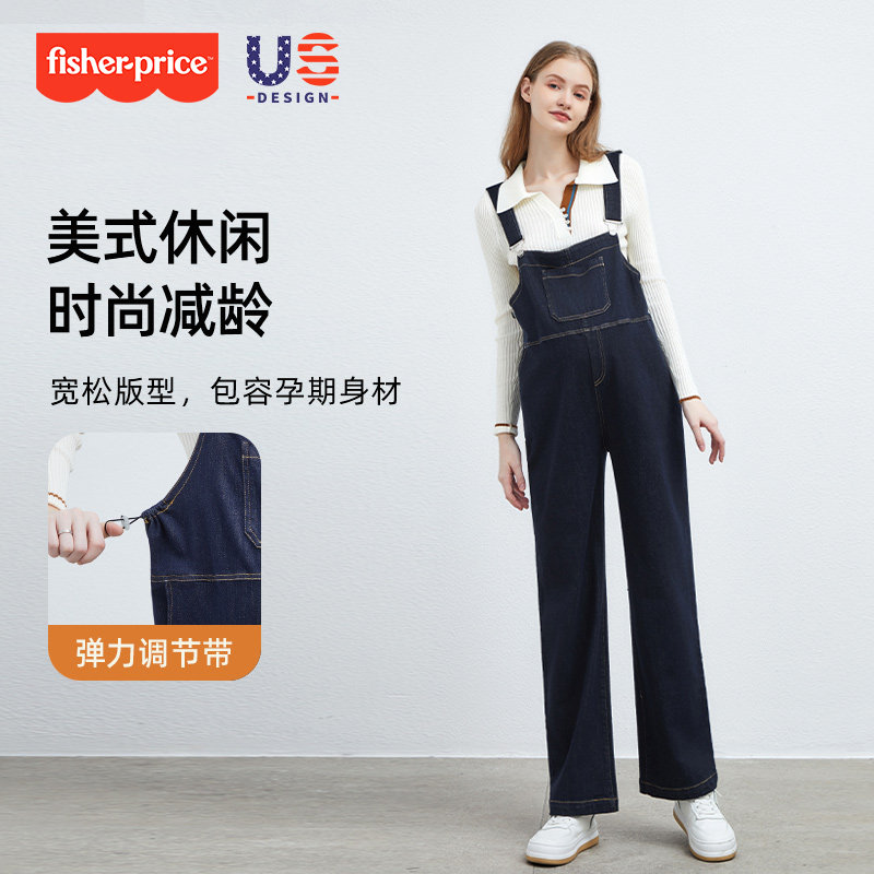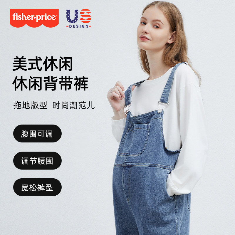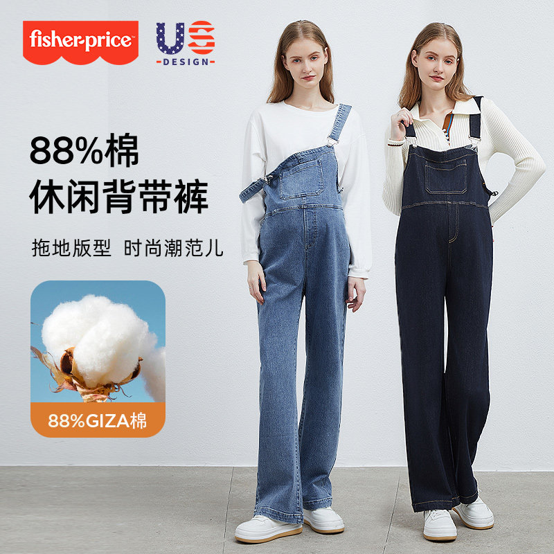 天猫费雪孕妇牛仔背带裤2026春秋新款外穿宽松大码两件套小个子孕妇装