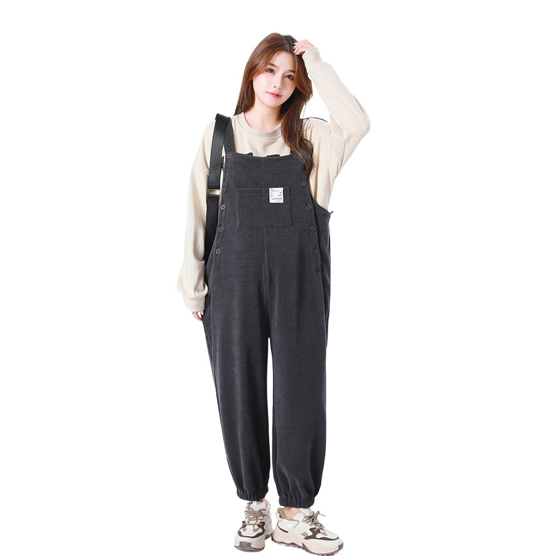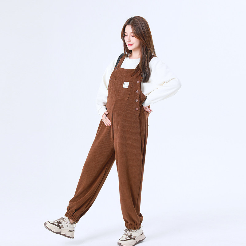 孕妇背带裤秋冬款2025新款孕妇装冬装宽松免脱加厚加绒灯芯绒裤子