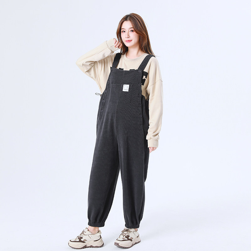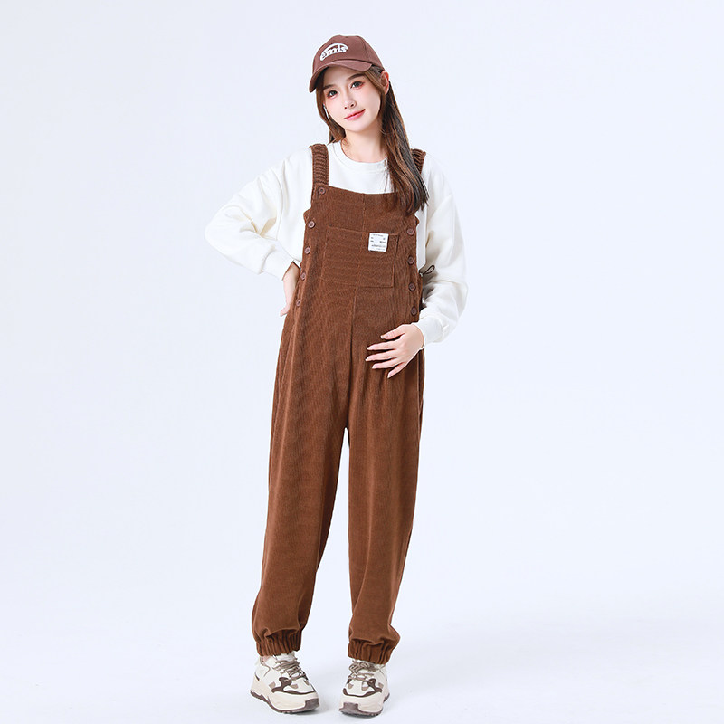 天孕妇背带裤秋冬款2025新款孕妇装冬装宽松免脱加厚加绒灯芯绒裤子