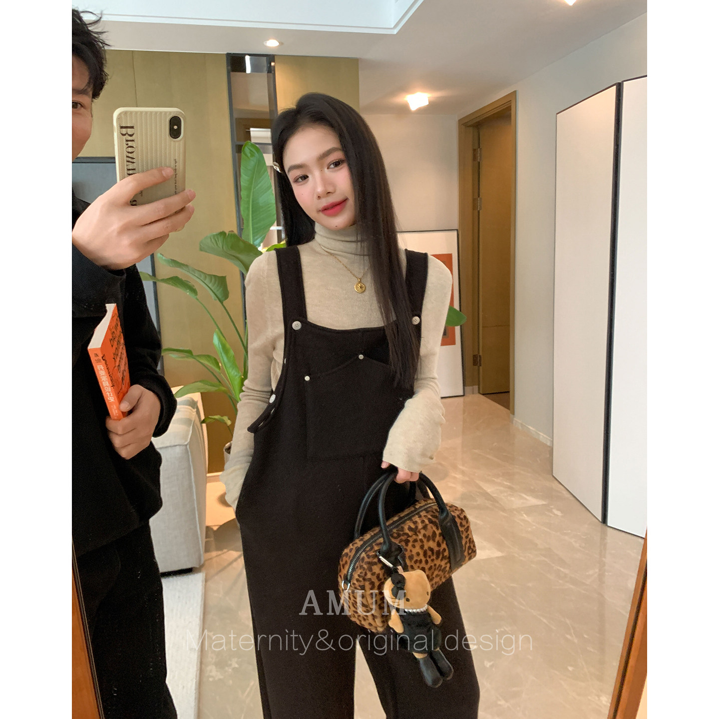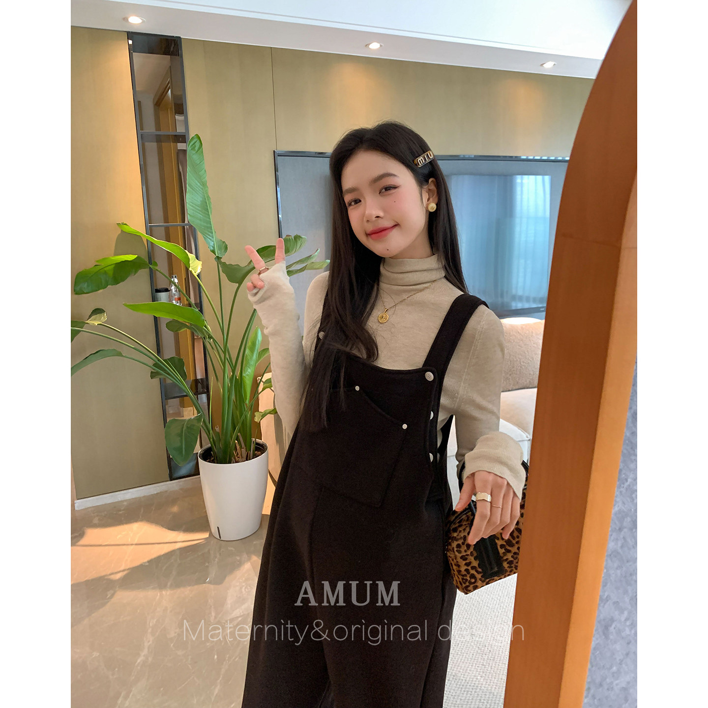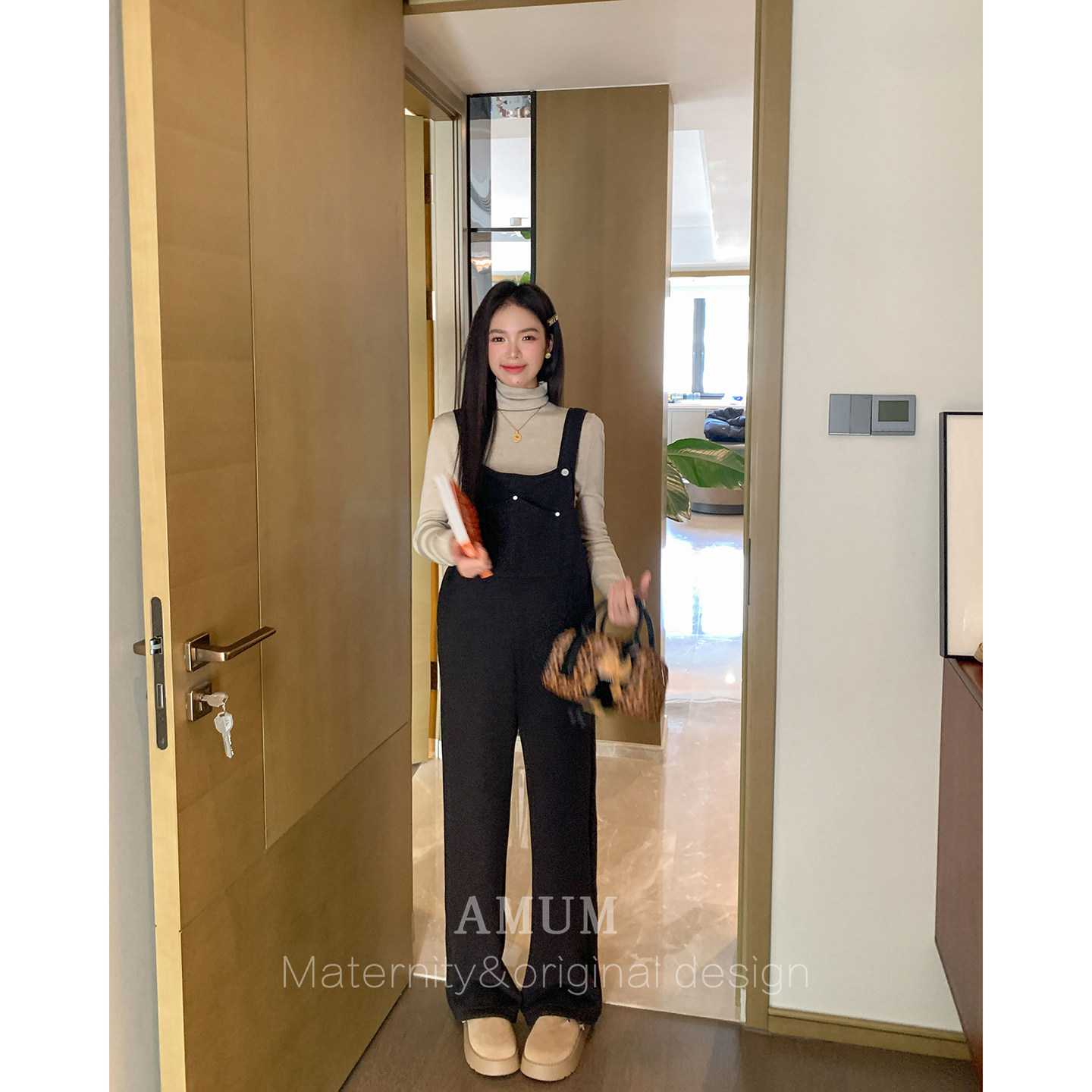 淘◆AMUM孕妇装◆慵懒侘寂~复古秋冬软糯垂感加厚阔腿休闲背带裤