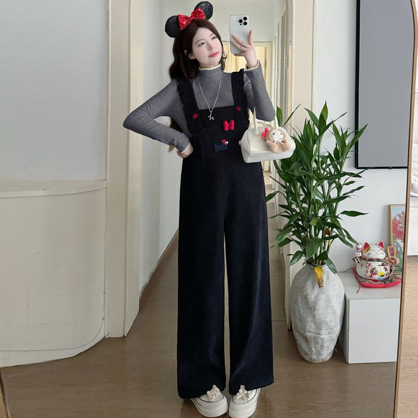 天猫孕妇套装秋冬2026新款韩版孕期穿搭加绒加厚背带裤打底衫两件套
