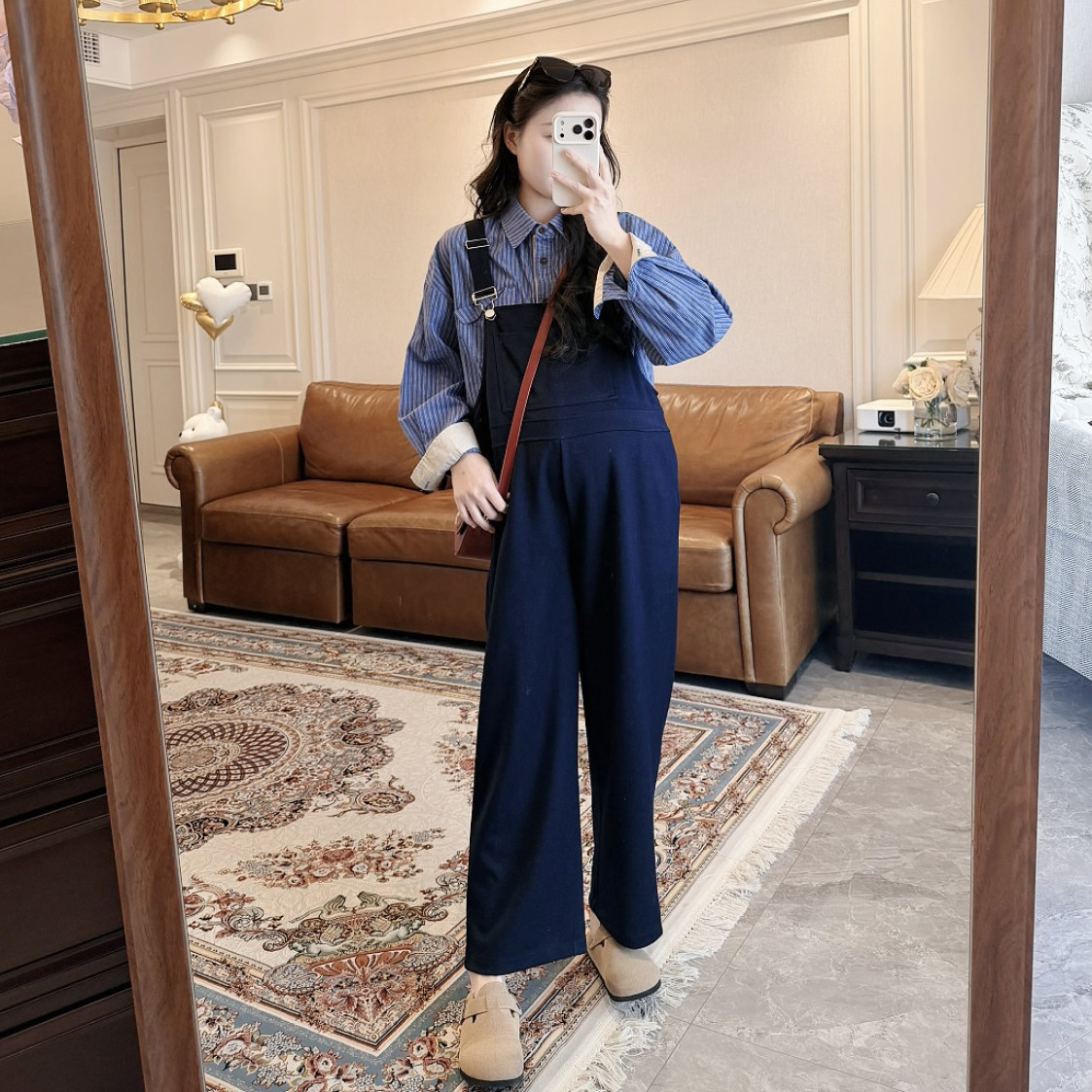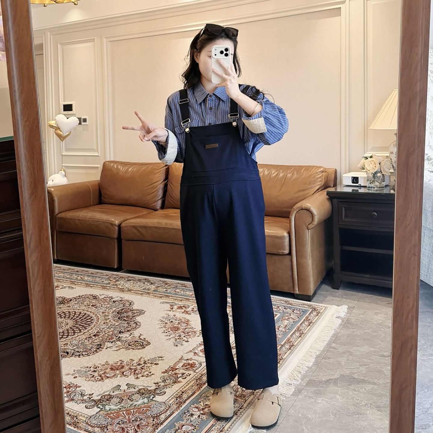 淘宝◆诺初◆孕妇装洋气减龄直筒背带裤春秋款弹性宽松不勒肚子休闲裤
