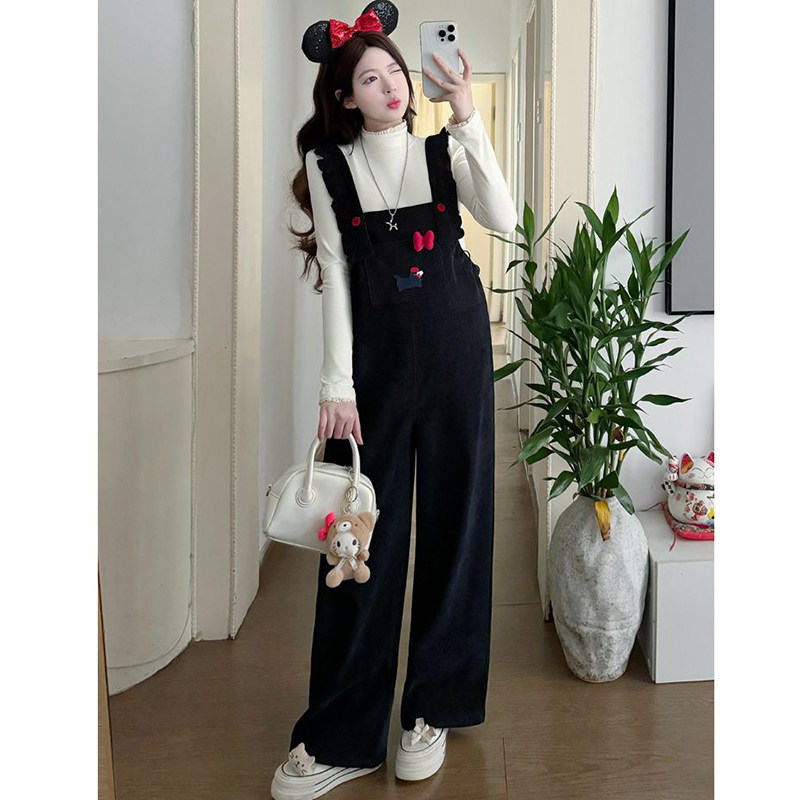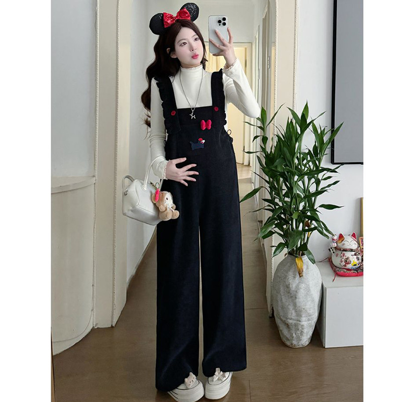 淘孕妇背带裤西裤秋外穿秋冬季加绒加厚吊带裤宽松冬装休闲阔腿裤