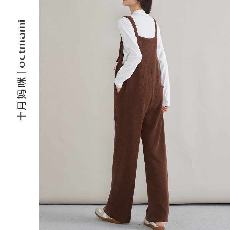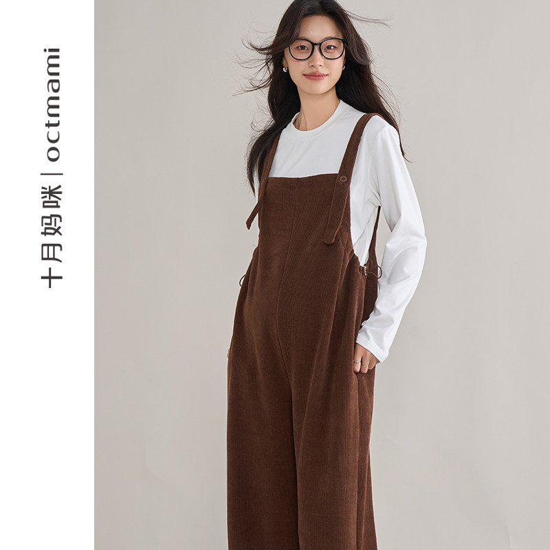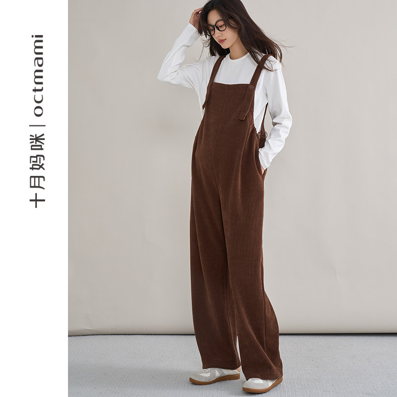 天猫十月妈咪孕妇侧边抽绳背带裤秋冬季新款外穿怀孕宽松托腹裤子冬装