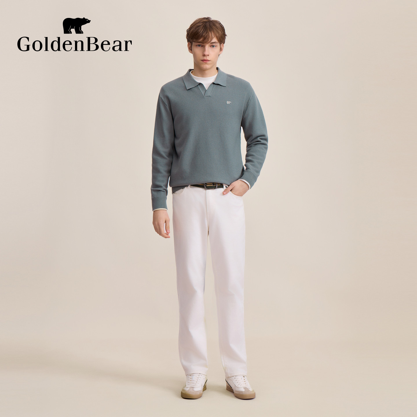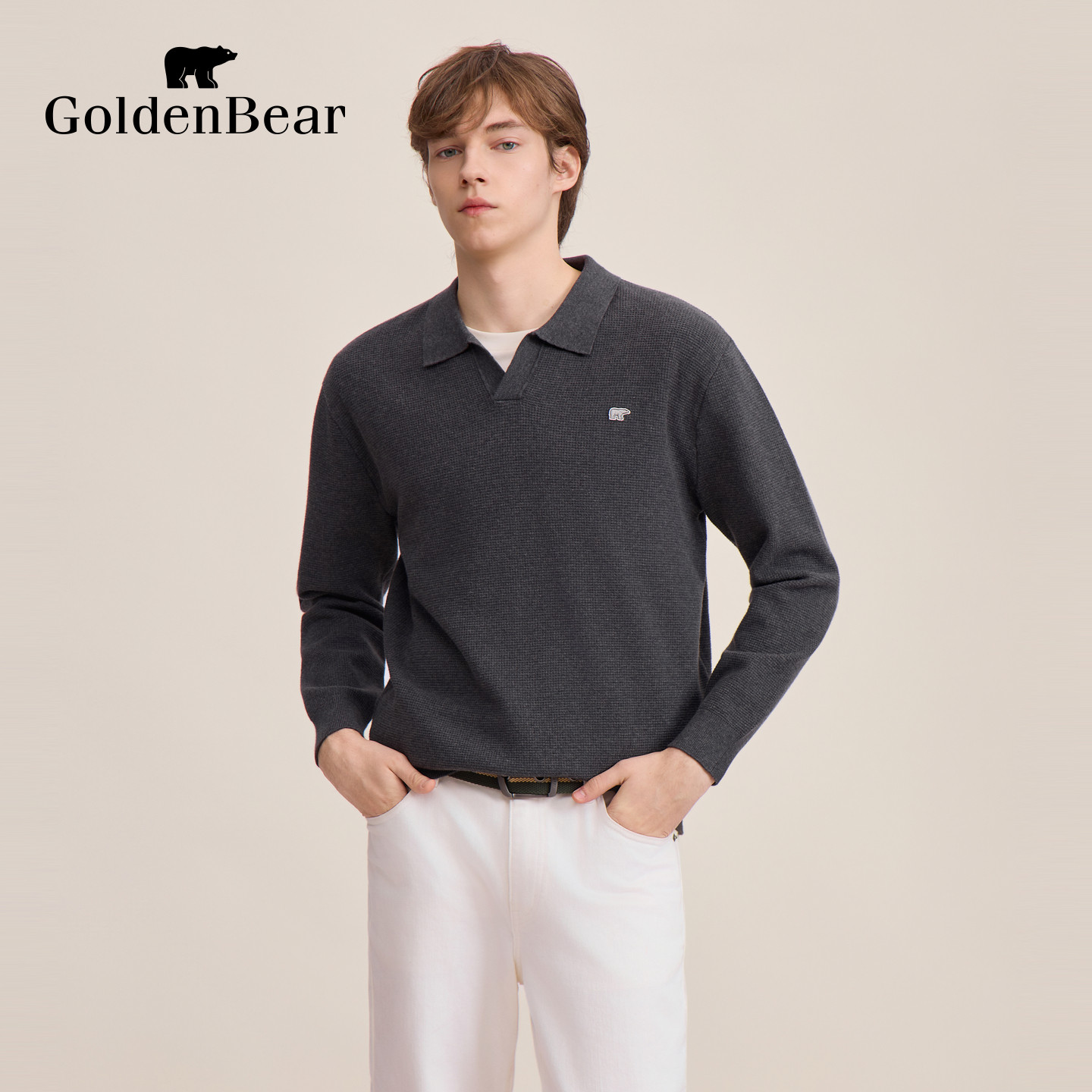 GOLDENBEAR(金熊)春季男装上衣——简系V领针织衫,以简约设计与舒适质感诠释都市男性优雅气质。采用优质精纺棉混纺面料,触感柔软、透气亲肤,适合春季多变的气候。经典V领剪裁修饰颈部线条,展现利落干练的穿搭风格。合身版型兼顾活动自由度与挺括轮廓,单穿或内搭皆宜。细节处注重工艺品质,走线工整,领口与袖口加固处理,耐穿不易变形。提供多色选择,轻松搭配西裤、休闲裤或牛仔裤,适用于通勤、休闲等多种场合。GOLDENBEAR以低调奢华诠释现代男士的日常美学,是春日衣橱不可或缺的百搭单品。
