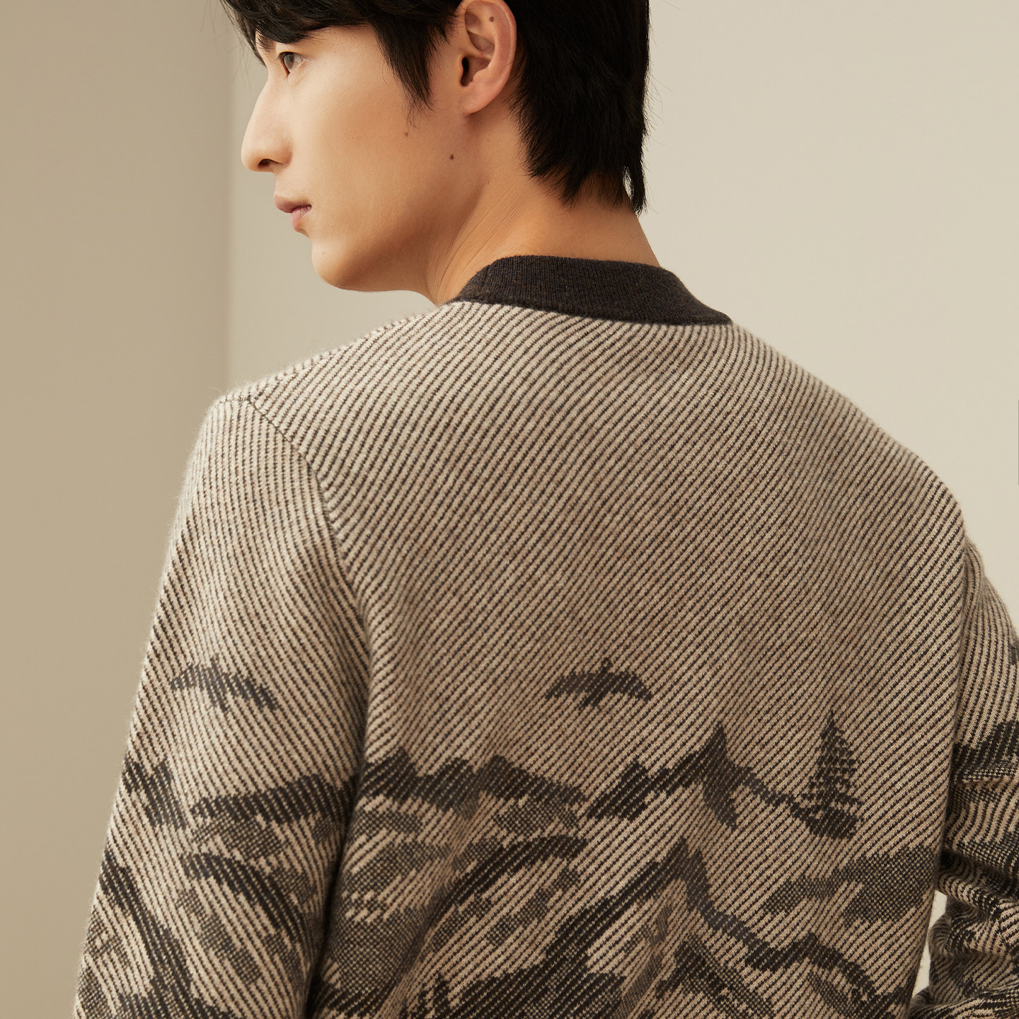 天设计师款佐丹奴棕色系针织衫男装提花肌理感宽松圆领毛衣18055704