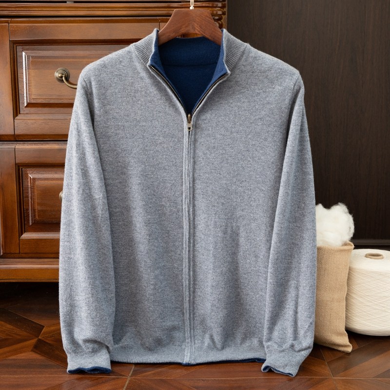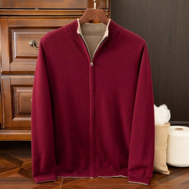 天猫半高领100纯山羊绒衫男开衫冬季针织宽松两面毛衣加厚双面穿外套