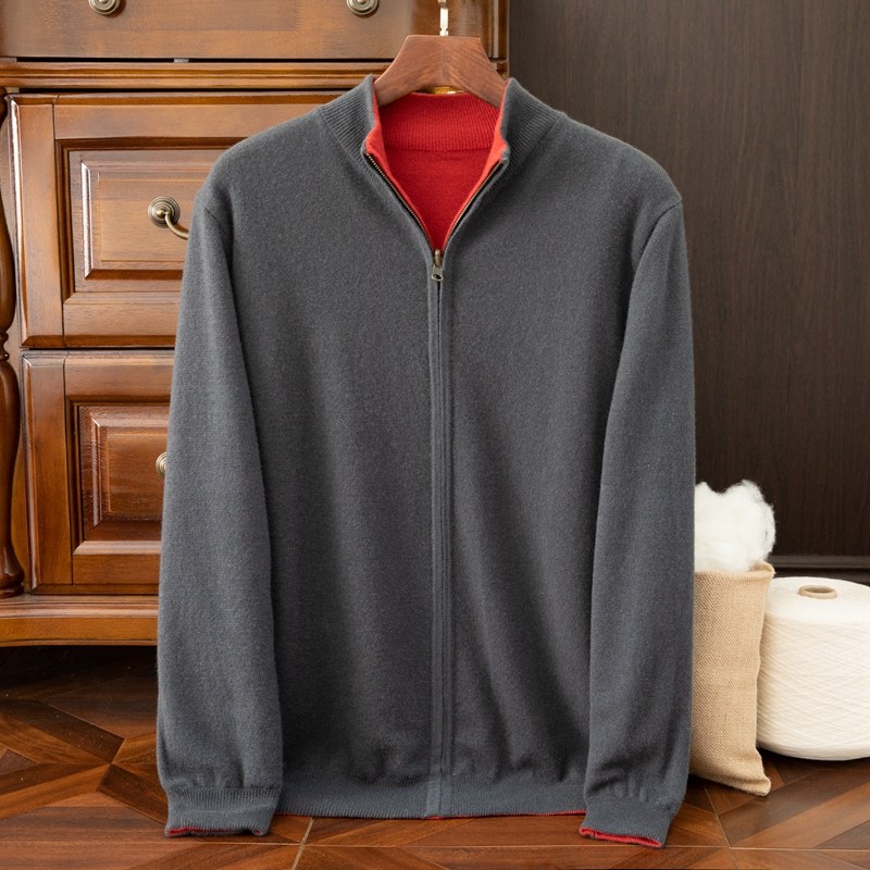 【纯羊毛】罗蒙羊绒衫男秋冬保暖蓄热针织衫男士立领防寒羊绒开衫