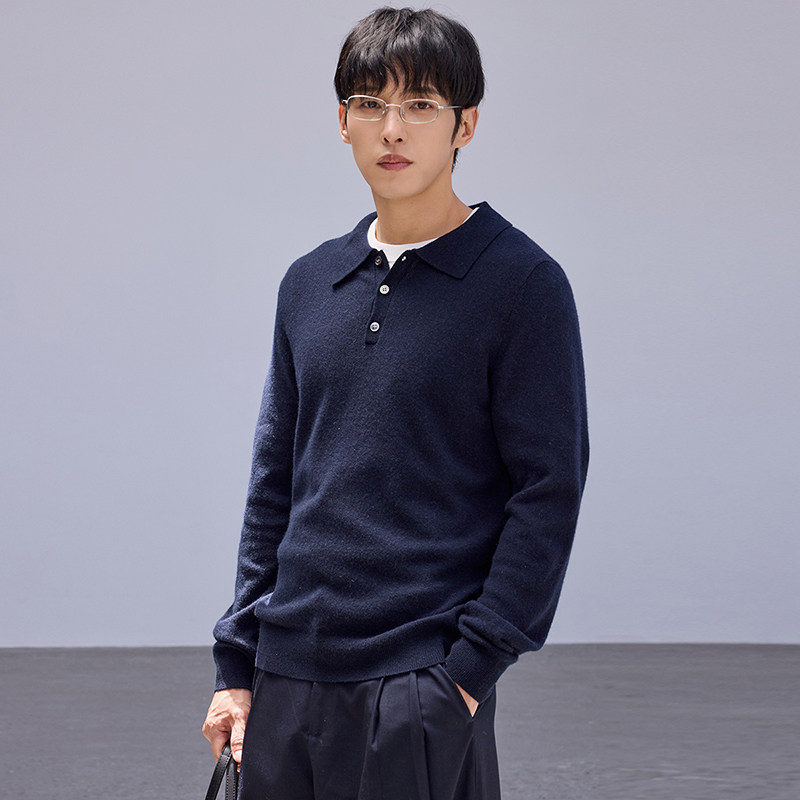 天猫思诺芙德翻领100%山羊绒衫男商务休闲针织毛衣25秋冬新款通勤上衣