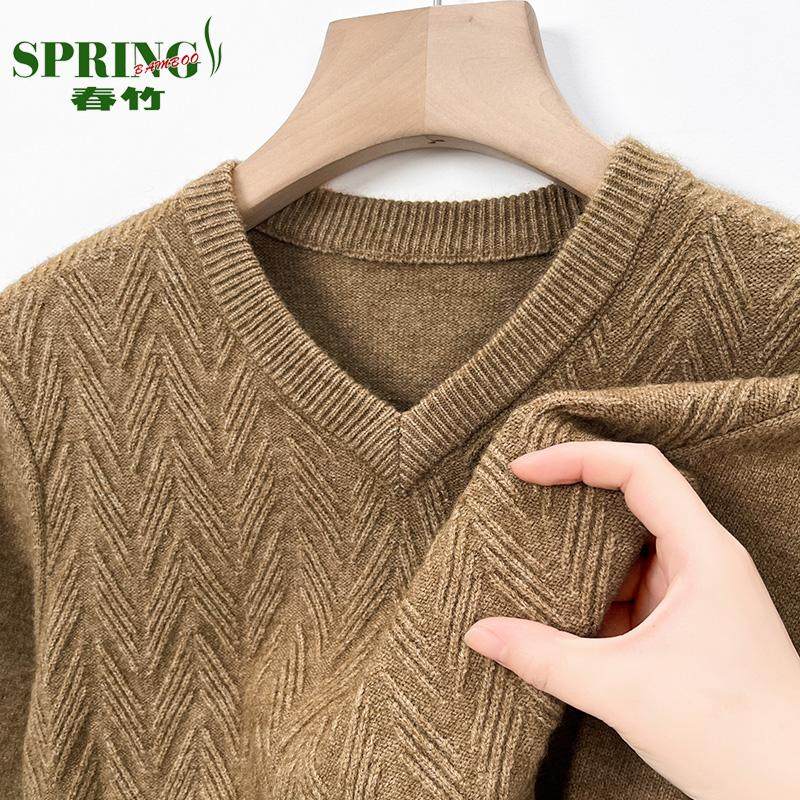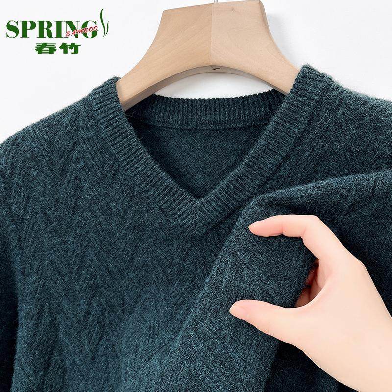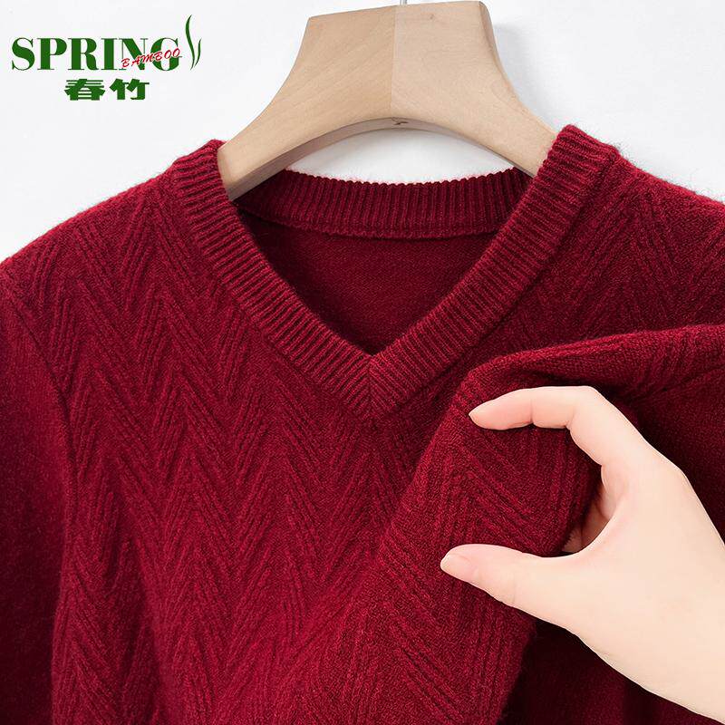 淘宝上海春竹100%羊绒衫男士鸡心领加厚保暖中年休闲针织V领新款毛衣