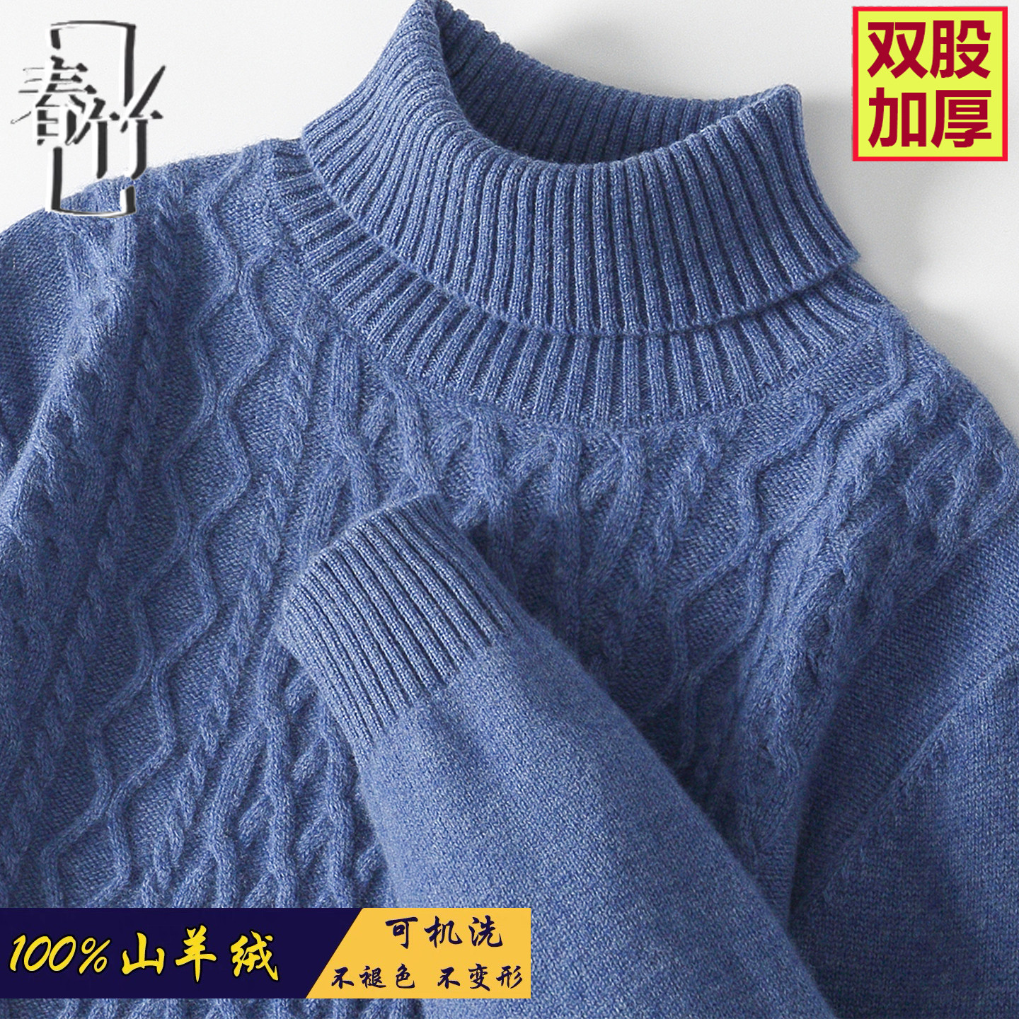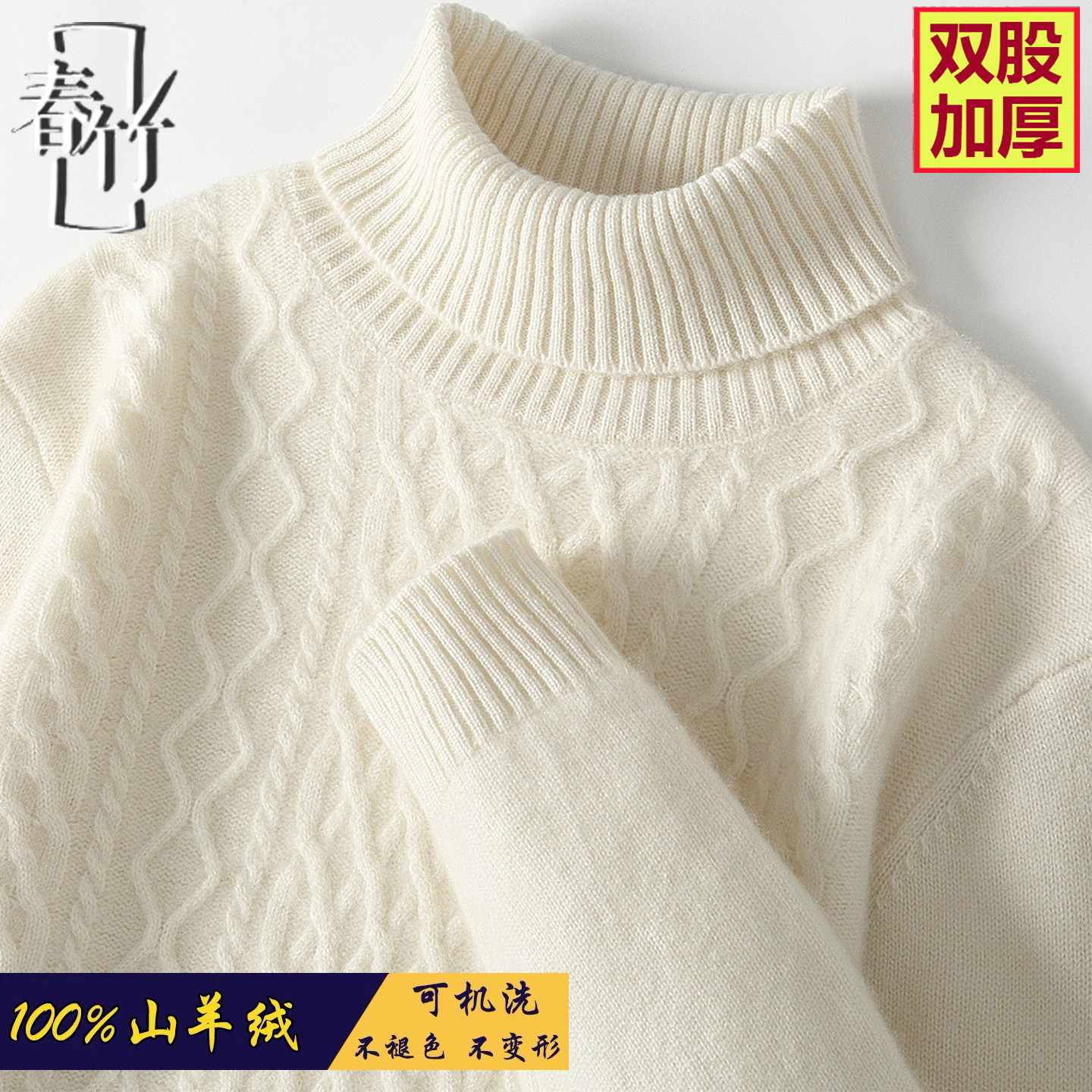 淘宝上海春竹羊绒衫男高领2025新款宽松三股加厚保暖针织打底羊绒毛衣