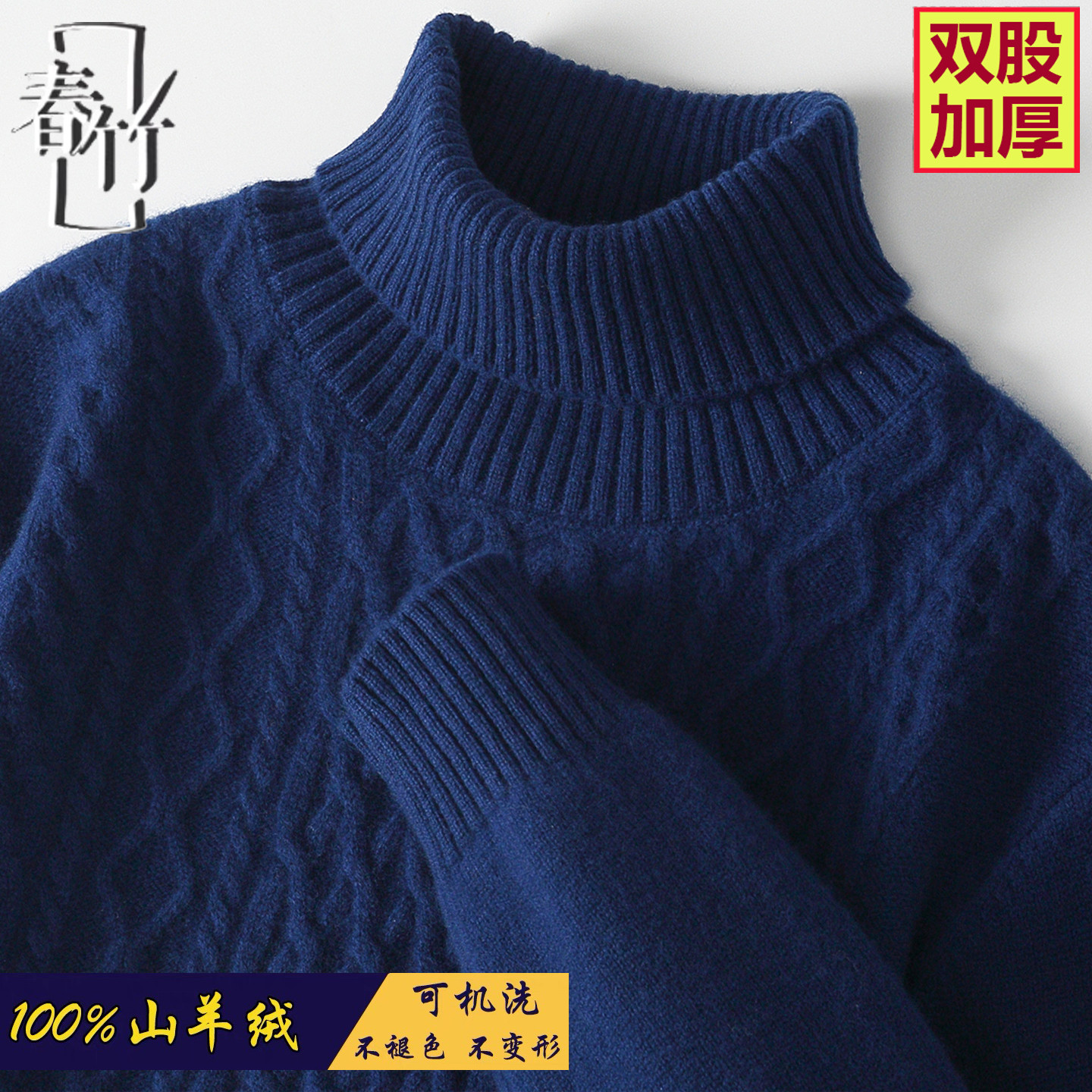 淘正品春竹100%纯山羊绒衫男宽松半高领双股加厚针织打底衫爆款特价