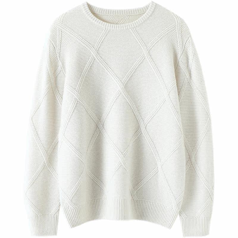 天猫本期力荐!男士新款100%山羊绒衫圆领加厚菱形格纯羊绒毛衣针织衫