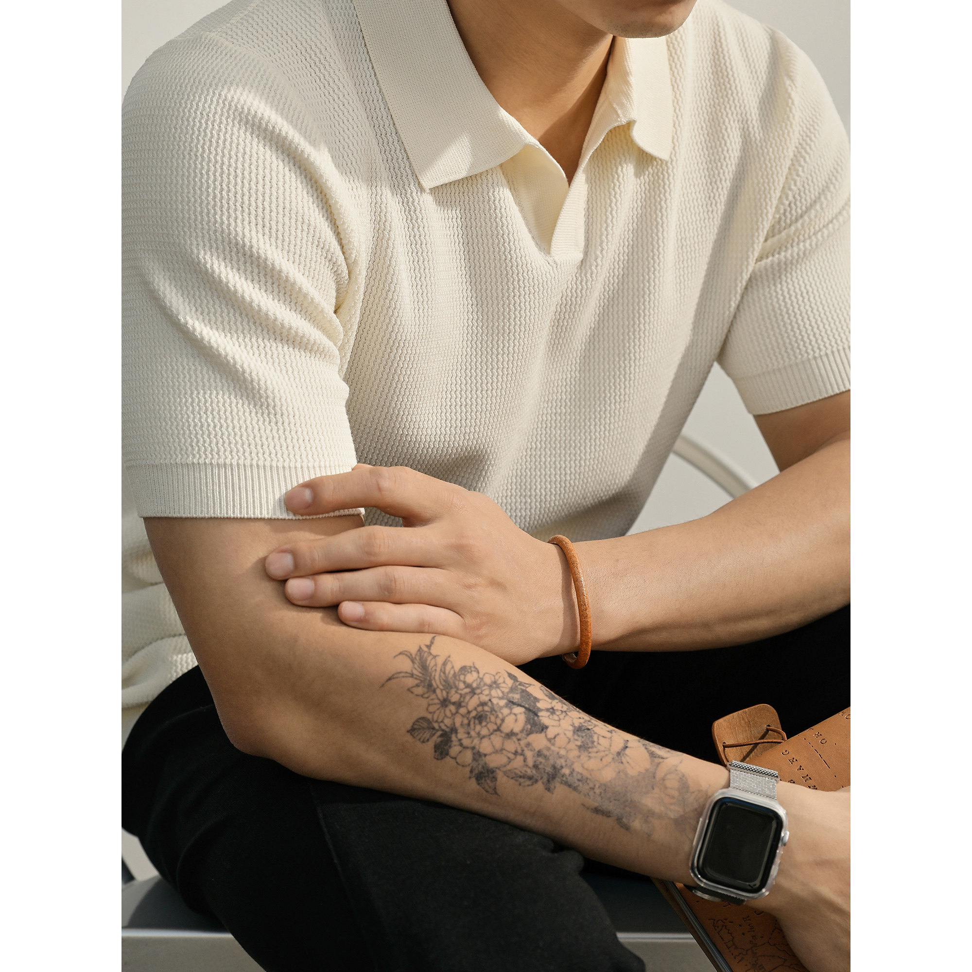 LUUD波浪肌理针织提花Polo衫,专为夏日打造,融合时尚与舒适。采用凉感混纺面料,亲肤透气,有效排汗散热,带来清爽穿着体验。经典小V领翻领设计,修饰颈部线条,彰显儒雅休闲气质。衣身融入立体波浪肌理提花工艺,细节丰富,质感出众,打破单调,提升整体造型感。版型修身不紧身,活动自如,适合日常通勤、周末出游等多种场合。多色可选,易于搭配,是男士夏季衣橱的实用之选。LUUD以匠心工艺诠释现代男性简约而不简单的穿搭态度。