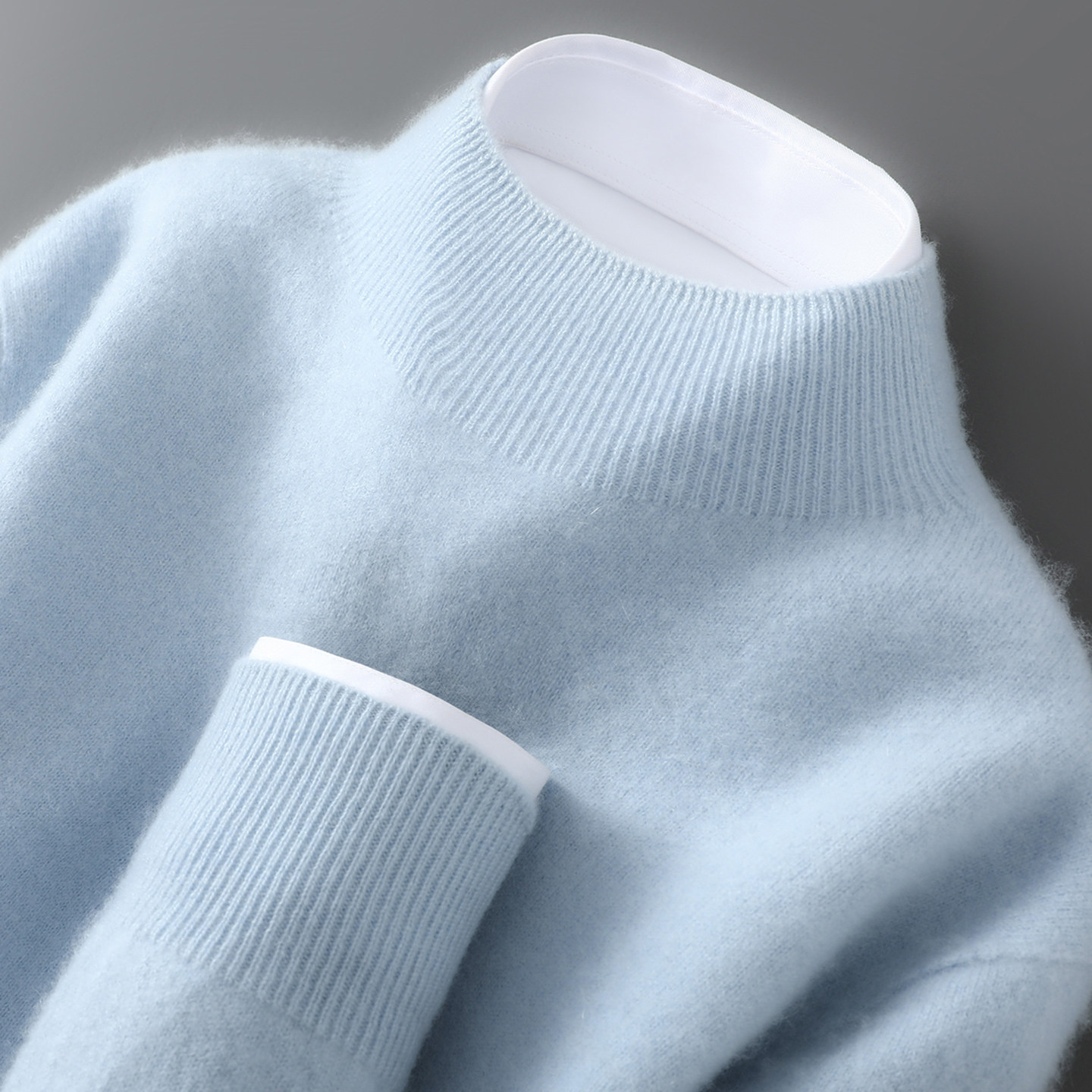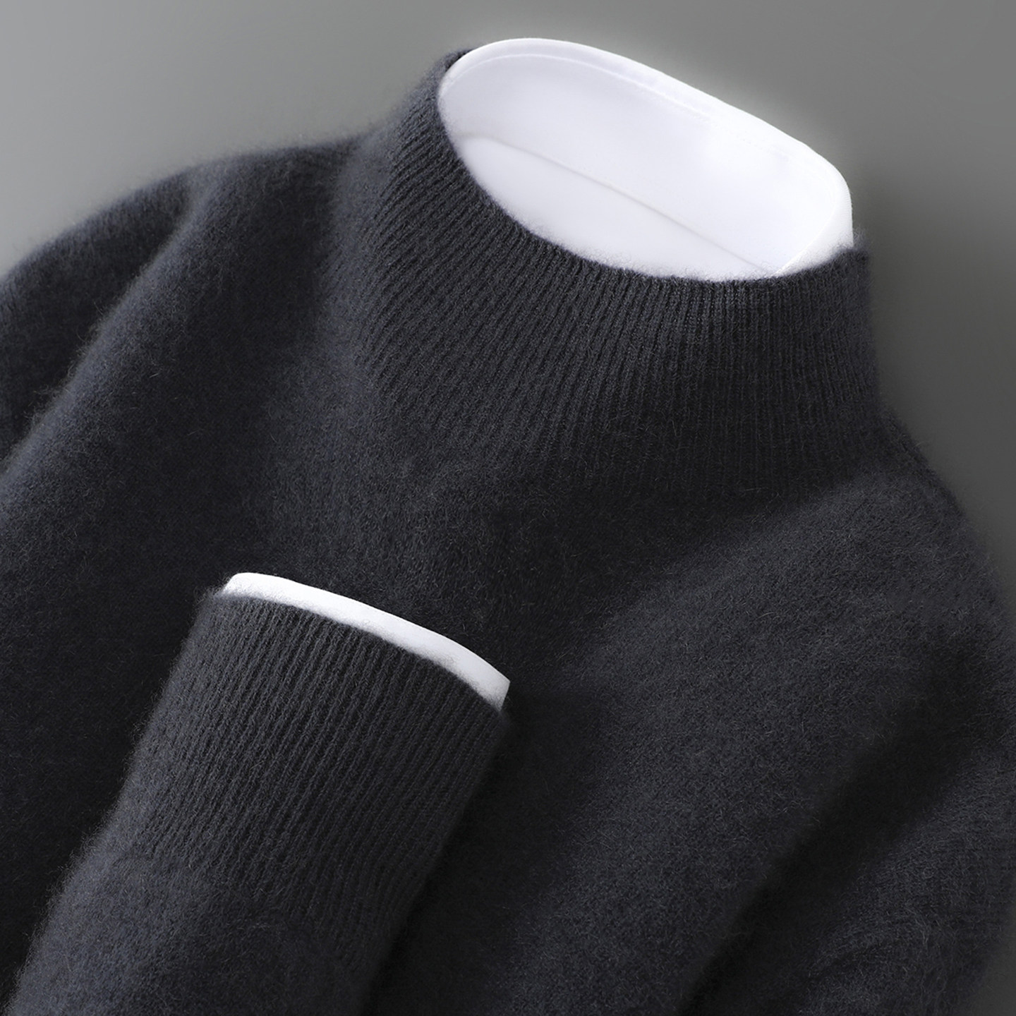 淘重磅双股加厚羊绒衫男100%纯山羊绒圆领半领毛衣针织衫大码羊毛衫