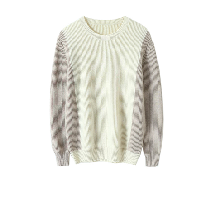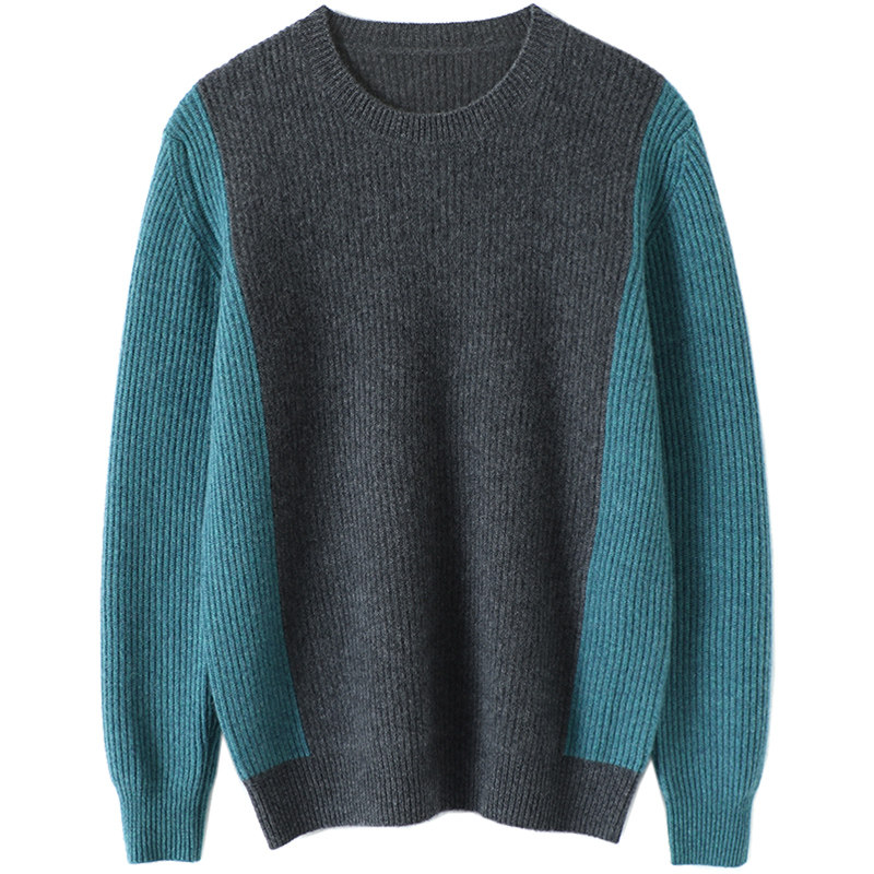 天猫风度翩翩~气质撞色男士加厚羊绒衫圆领纯羊绒毛衣针织打底衫宽松