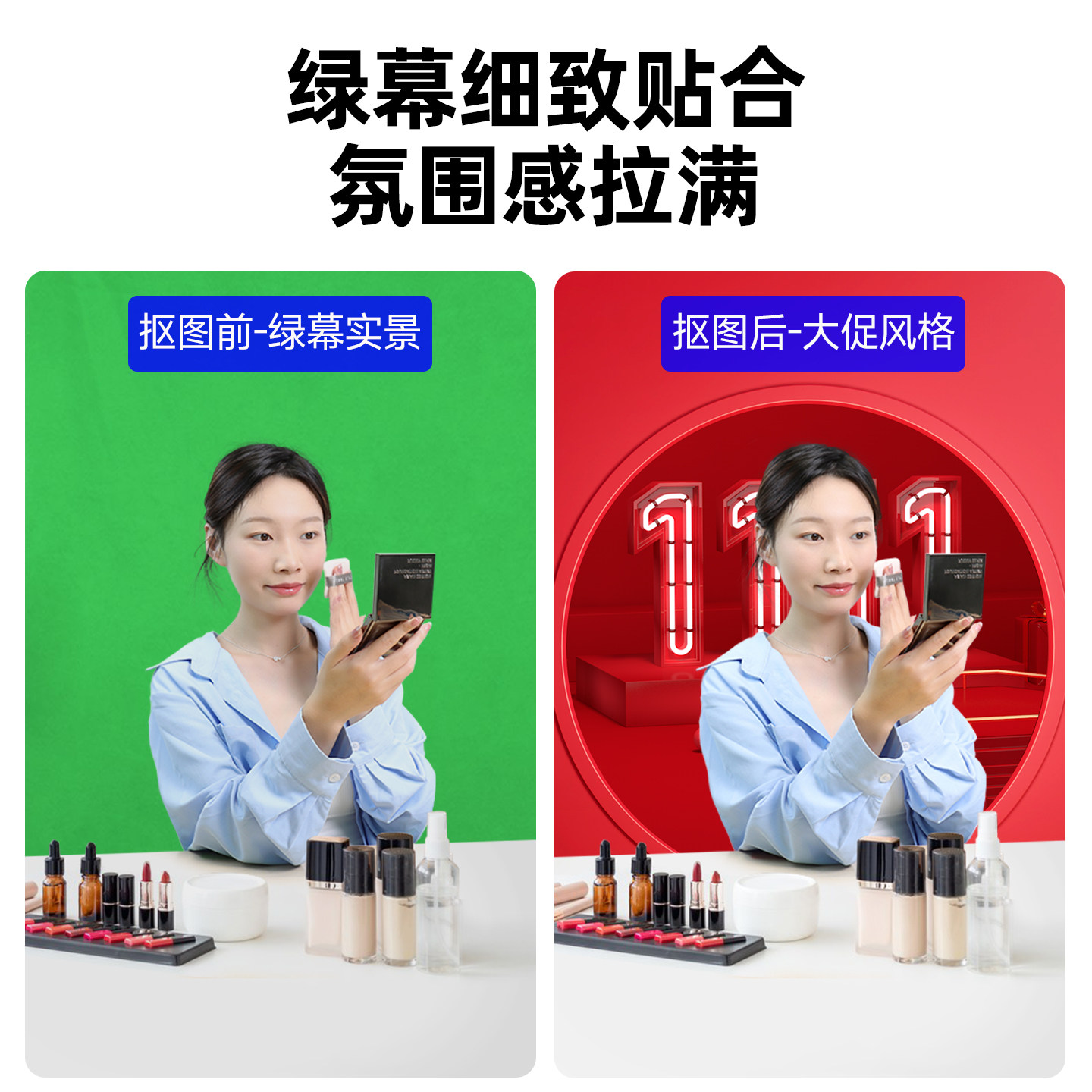 数魅300w直播补光灯专用抖音主播卖货影棚摄影灯视频影视打光拍照COB双色温球形柔光绿幕直播间灯光设备全套