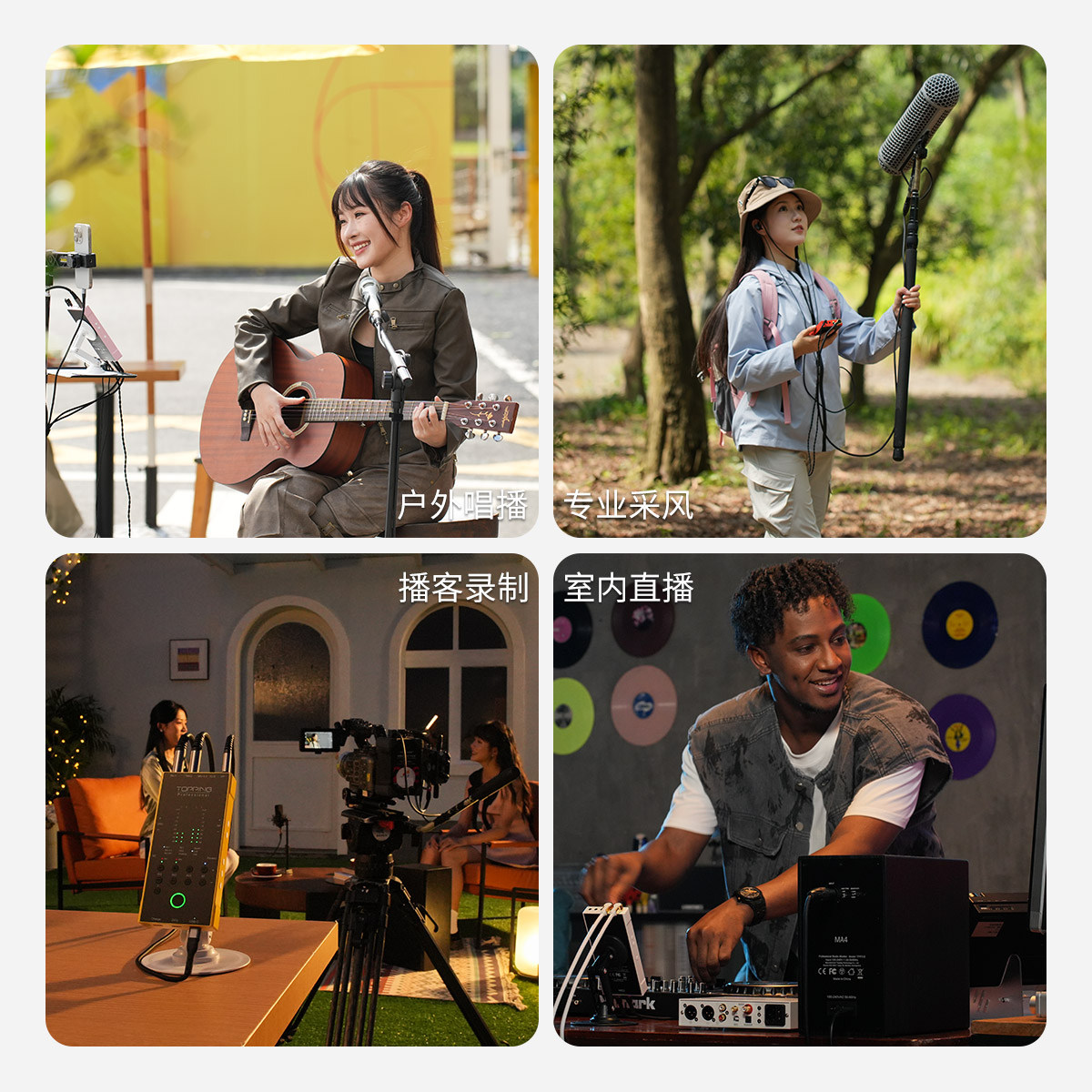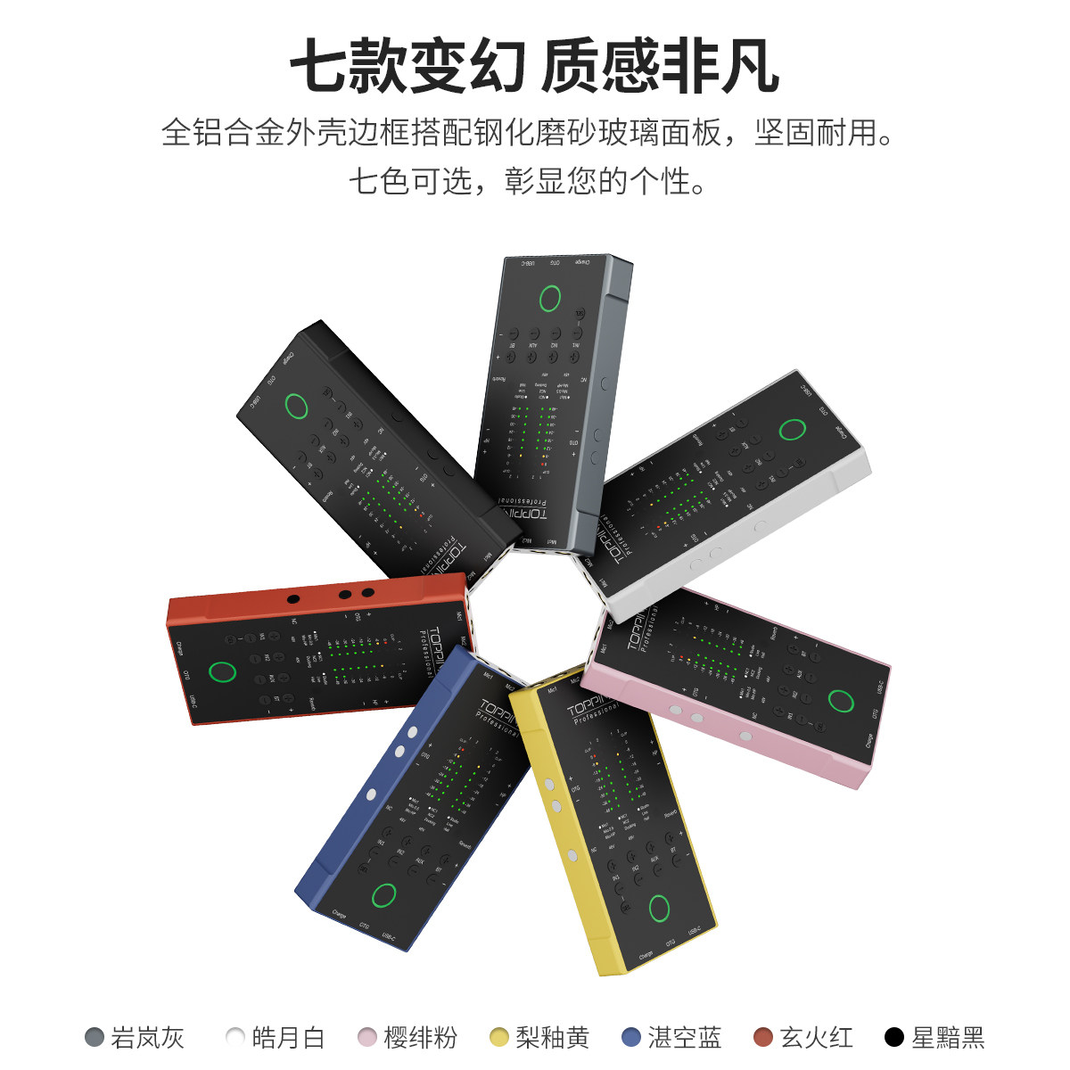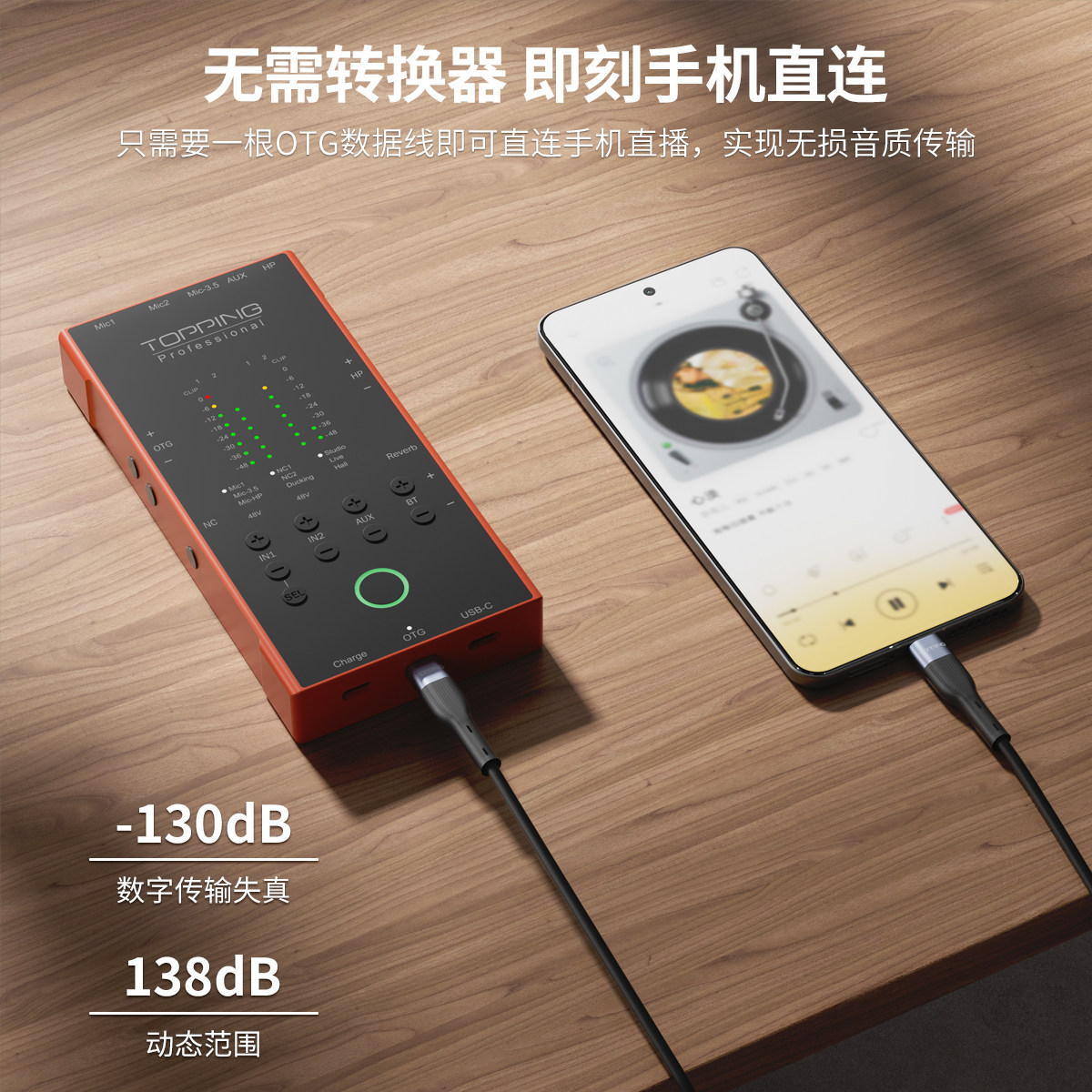 TOPPING拓品M62手机声卡是一款专为户外直播和移动K歌打造的专业音频设备,兼容抖音、快手等主流平台。它采用高品质DSP芯片,支持实时调音、混响、变声等功能,音质清晰通透,有效降噪,确保直播人声饱满立体。配备专业电容麦克风,拾音灵敏,抗干扰强,搭配手机即插即用,无需复杂设置。内置大容量电池,续航持久,满足长时间户外直播需求。M62声卡套餐还包含支架、音频线等配件,便携易用,是主播、歌手、户外达人提升音质的理想选择,让每一次直播都更具专业魅力。