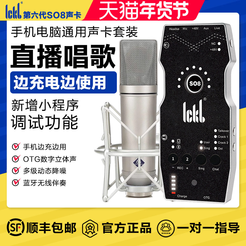 天猫ickb so8第六代手机声卡直播专用唱歌设备全套户外麦克风网红套装