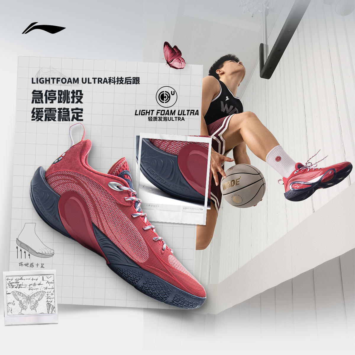 李宁韦德DLO1是一款专为实战设计的男子篮球鞋,灵感源自韦德系列,融合轻量化与高性能。鞋身采用透气网布材质,有效提升足部空气流通,保持干爽舒适。中底搭载李宁云缓震科技,提供出色的冲击吸收与回弹反馈,助力快速移动与跳跃落地。外底运用多向防滑纹路设计,增强抓地力,适应室内外多种场地。低帮造型兼顾灵活性与脚踝自由度,适合后卫及速度型球员。整体设计简约时尚,兼具实战性能与日常穿搭需求,是追求速度与稳定性的篮球爱好者的理想之选。