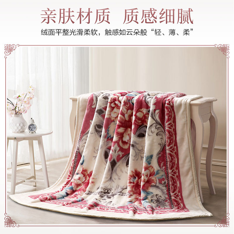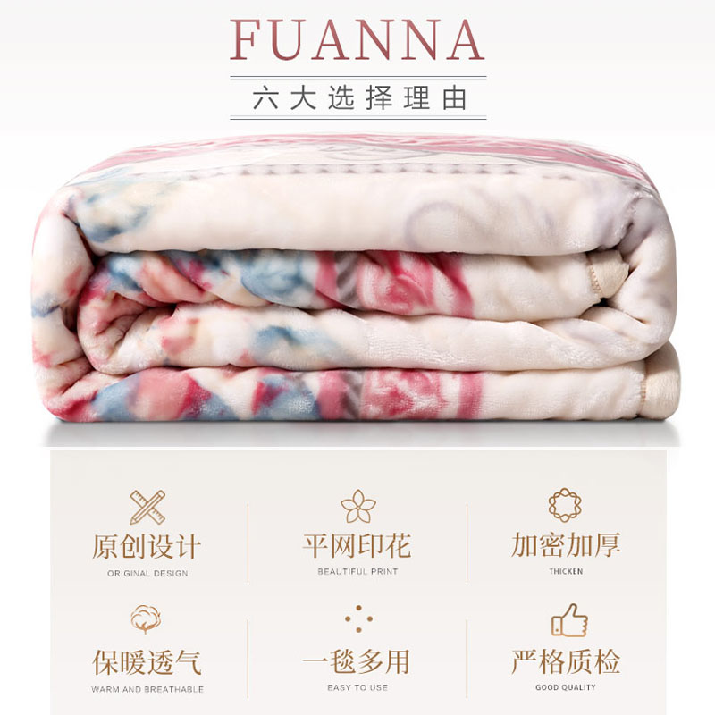 天猫富安娜毯子加厚拉舍尔毛毯冬季午睡珊瑚绒沙发盖毯结婚被子床上用