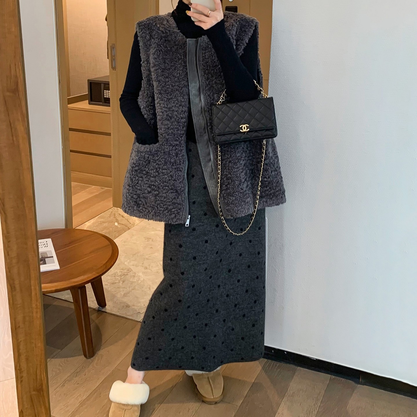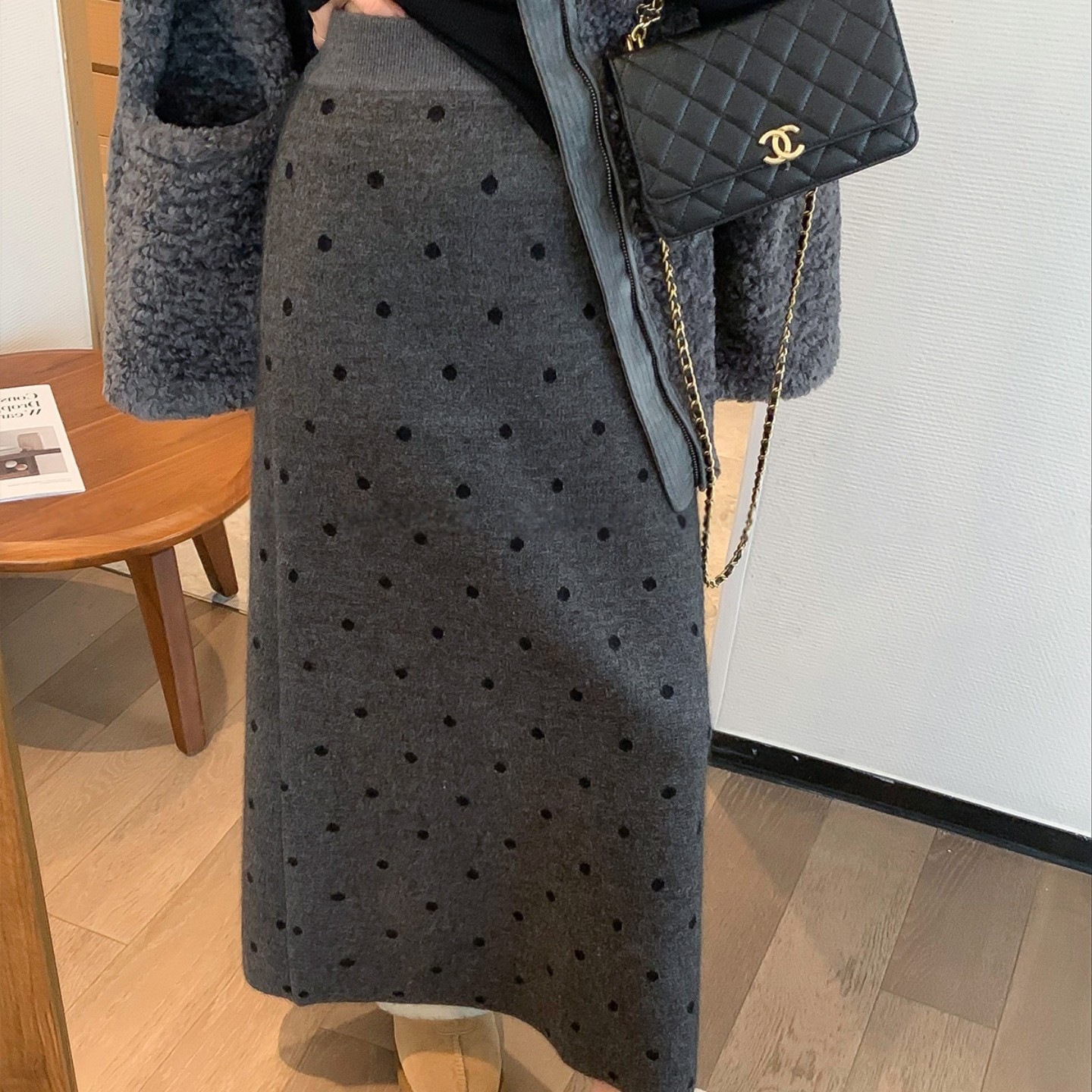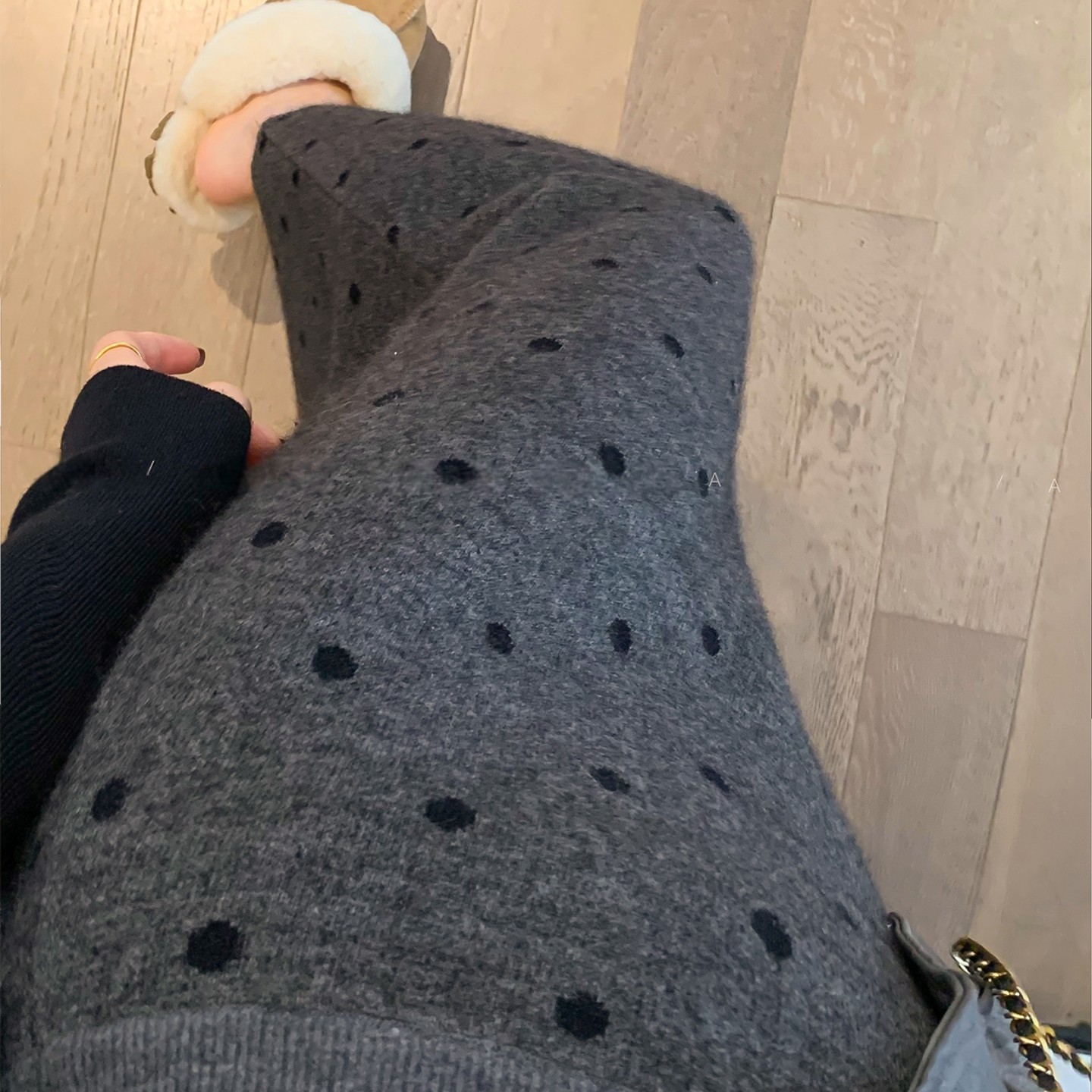 深灰色毛呢波点半身裙女秋冬新款胖妹妹mm高腰显瘦遮胯长款a字裙