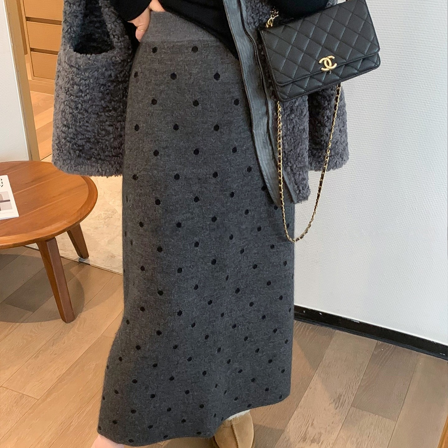 淘宝大码女装灰色波点毛呢超好看冬装半身裙梨形身材直筒中长款a字裙