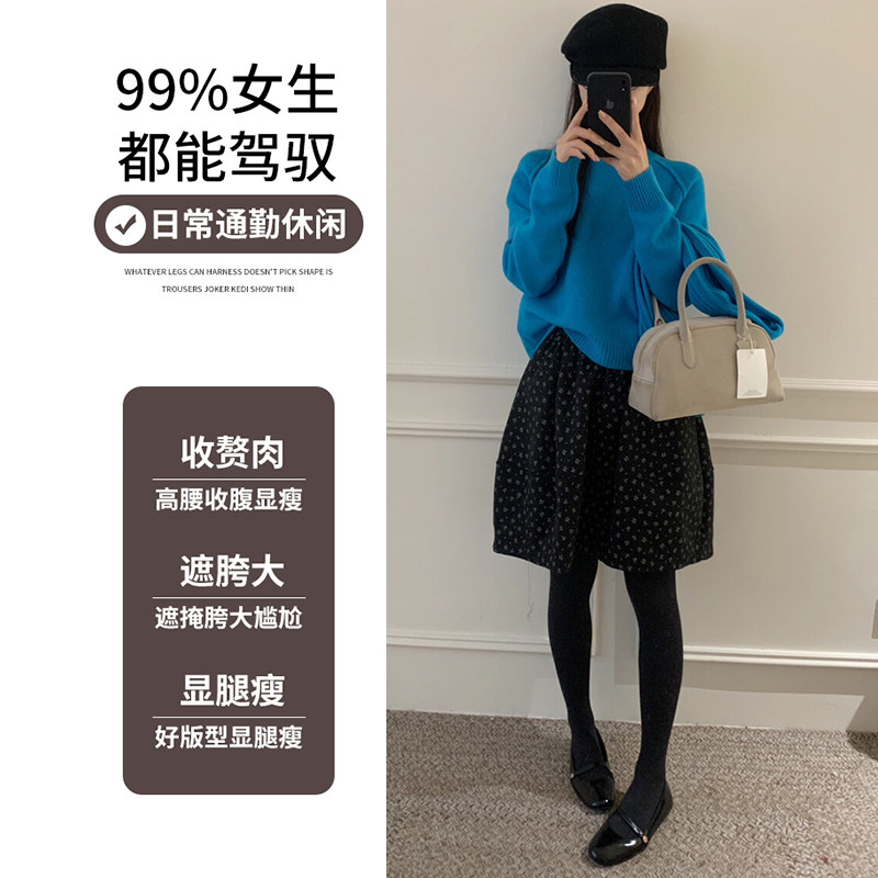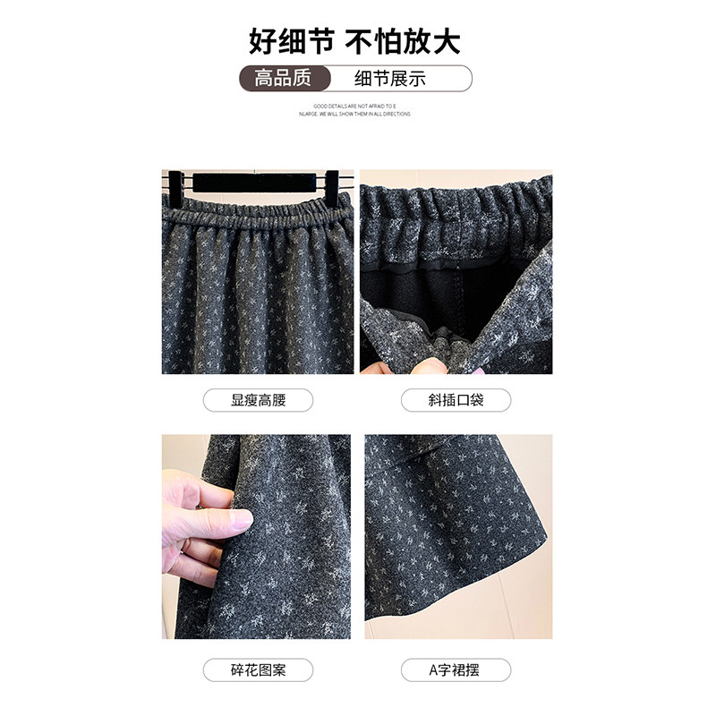 天猫碎花毛呢A字半身裙女2025新款秋冬五分高腰蓬蓬显瘦百搭碎花短裙