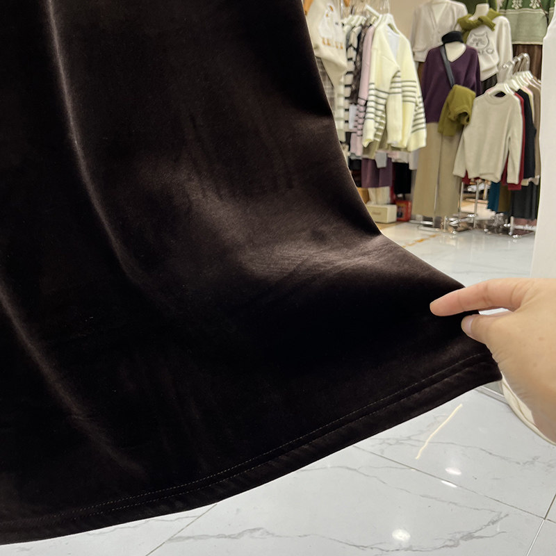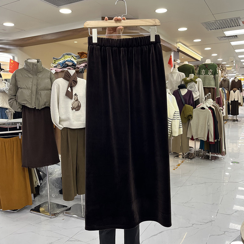 淘宝欧货复古金丝绒半身裙女秋冬加绒加厚后开叉包臀裙配毛衣高腰长裙