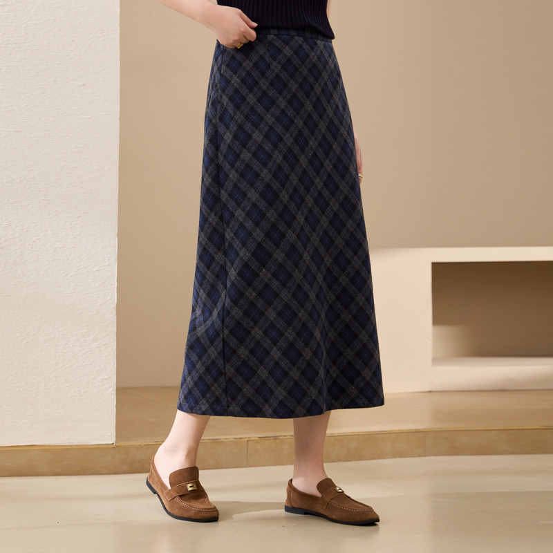 显瘦显腿长 气质简约高档亚麻提花半身裙秋冬原创百搭大摆半裙女