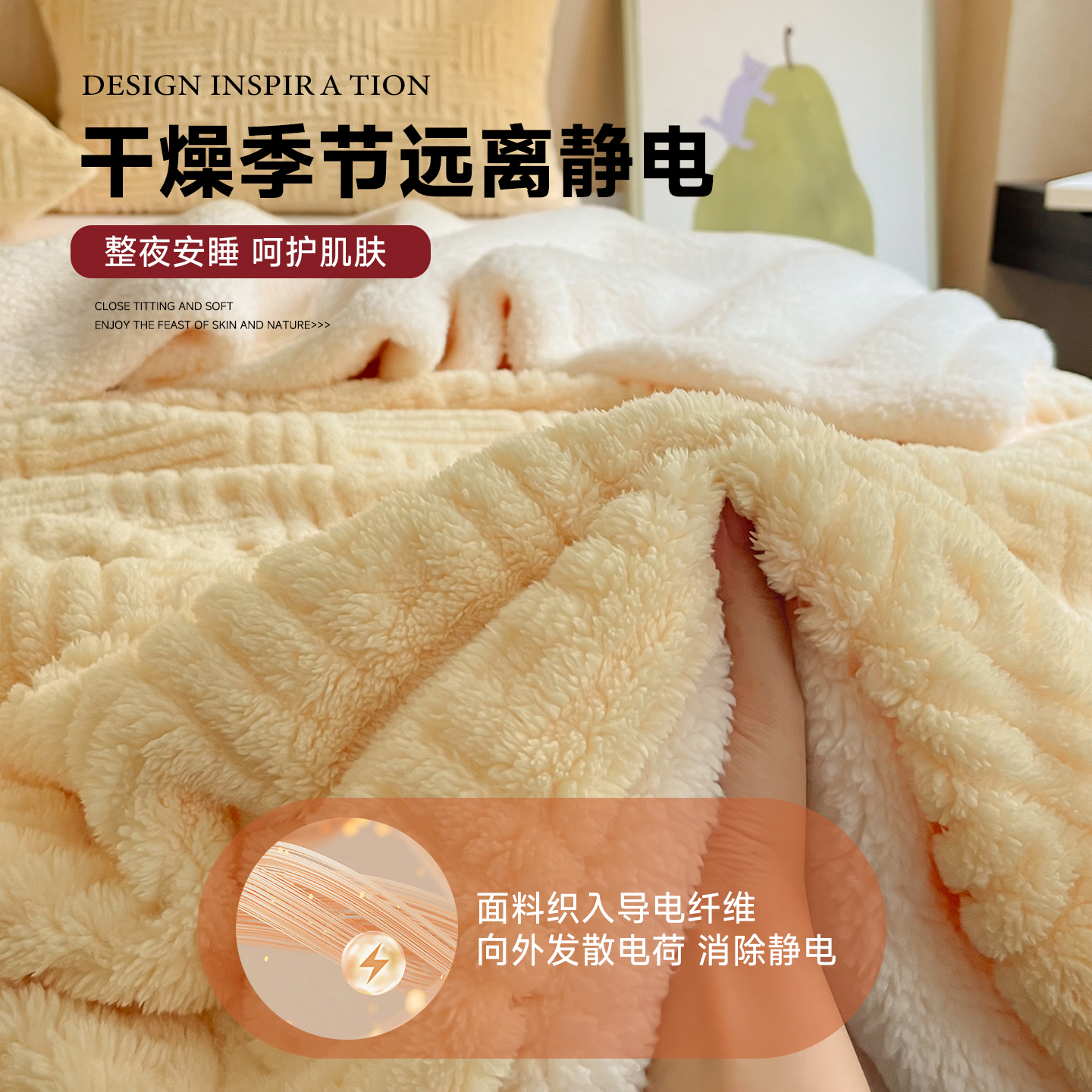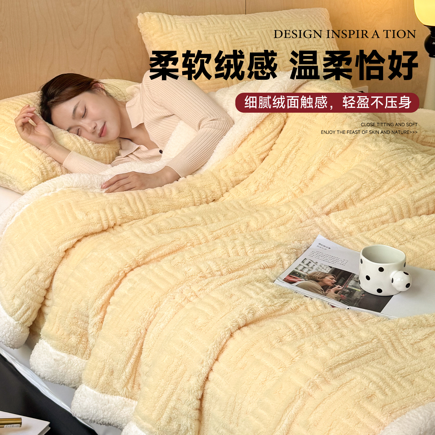 淘富安娜双层加厚保暖拉舍尔毯法兰绒毛毯卧室双人被子绒毯床单毯子
