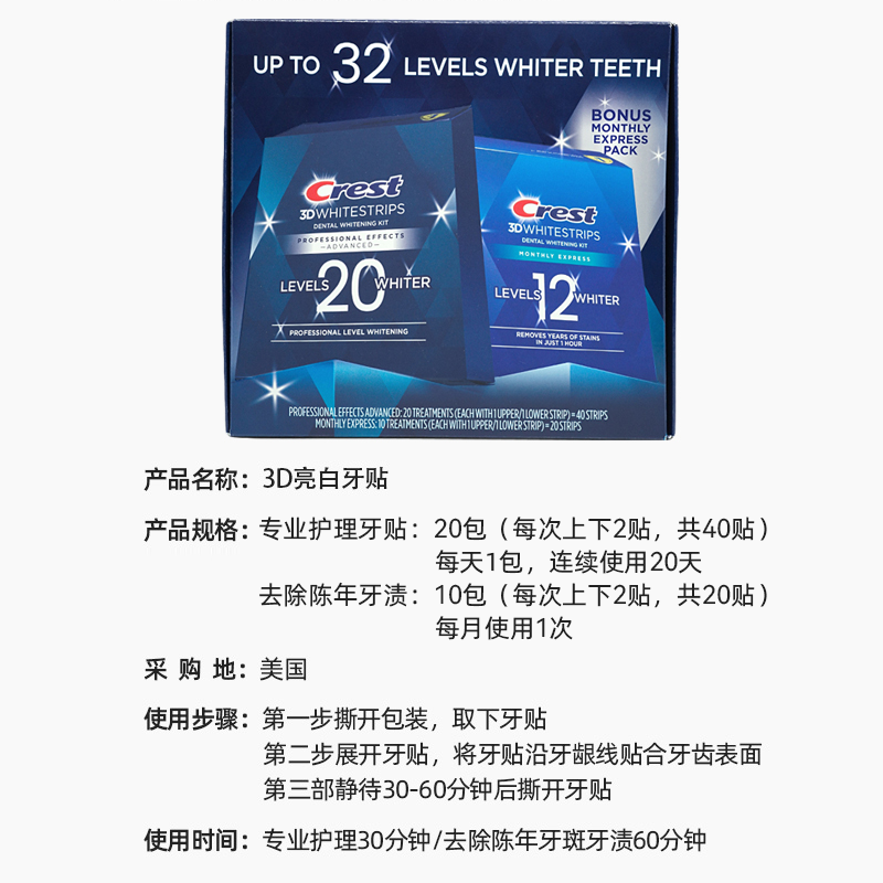 淘宝美国直邮 Crest佳洁士美版加强3D white密集型去黄渍美白牙贴进口