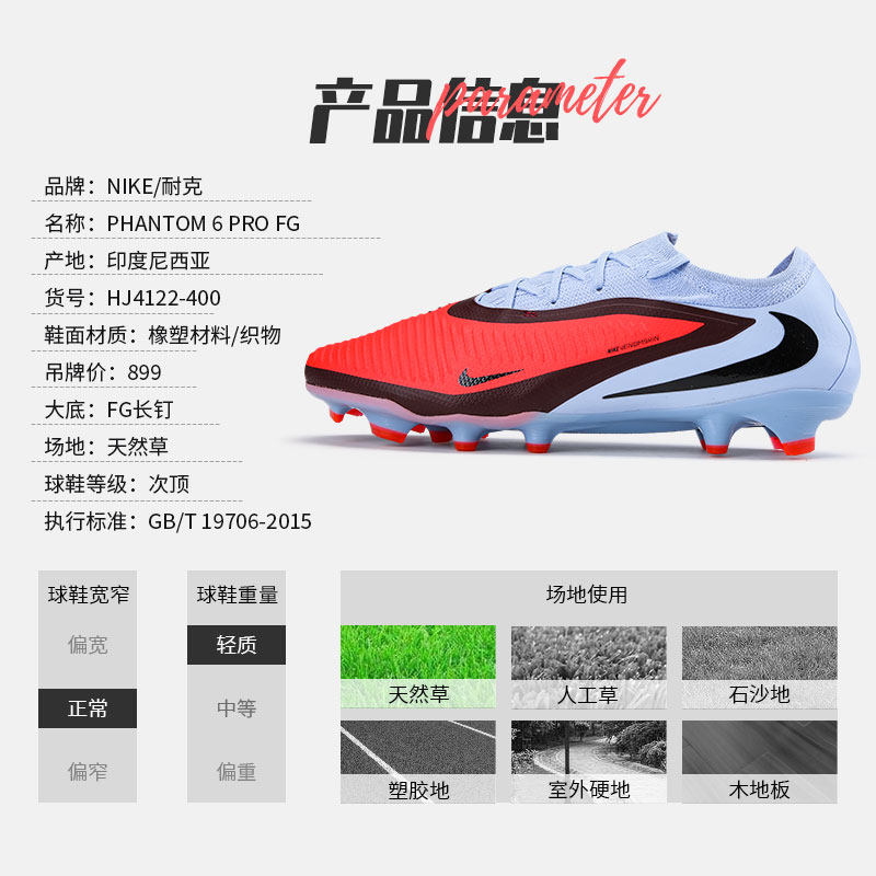 天猫NIKE足球鞋GX次顶FG男耐克PHANTOM6长钉低帮天然草正品HJ4122-400