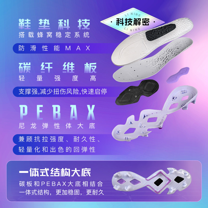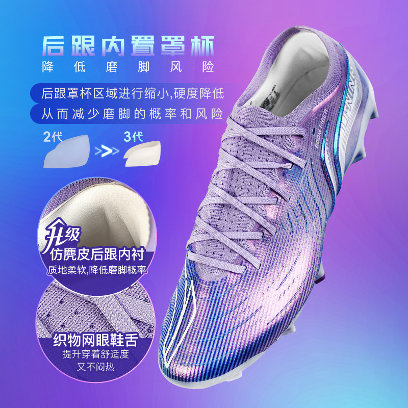 李宁疾影3高端FG长钉足球鞋,专为追求速度与爆发力的成人球员打造。鞋面采用轻质䨻丝覆膜科技,兼具柔韧性与支撑性,贴合脚型,提升触球精准度。内置全掌碳板,提供强劲推进力与抗扭转性能,助力疾速突破。FG长钉配置适配天然草场,抓地力出众,急停变向更稳定。整体设计融合轻量化结构与专业竞技需求,兼顾舒适与性能。无论是高强度对抗还是快速突破,疾影3都能为球员提供卓越支持,是专业级足球运动的高端之选。