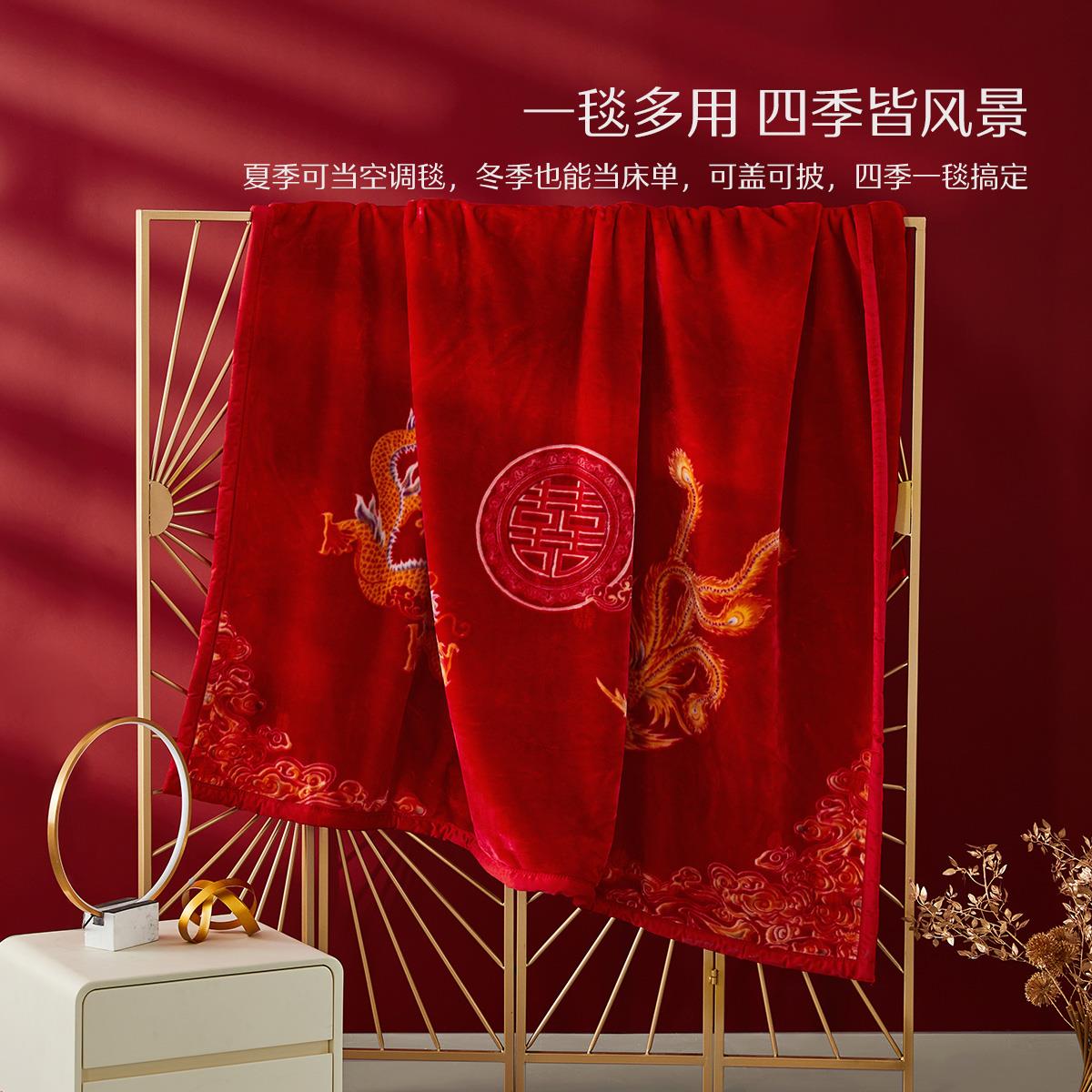 水星家纺婚庆毛毯午休毯子保暖空调毯秋冬厚家用沙发毯结婚盖毯