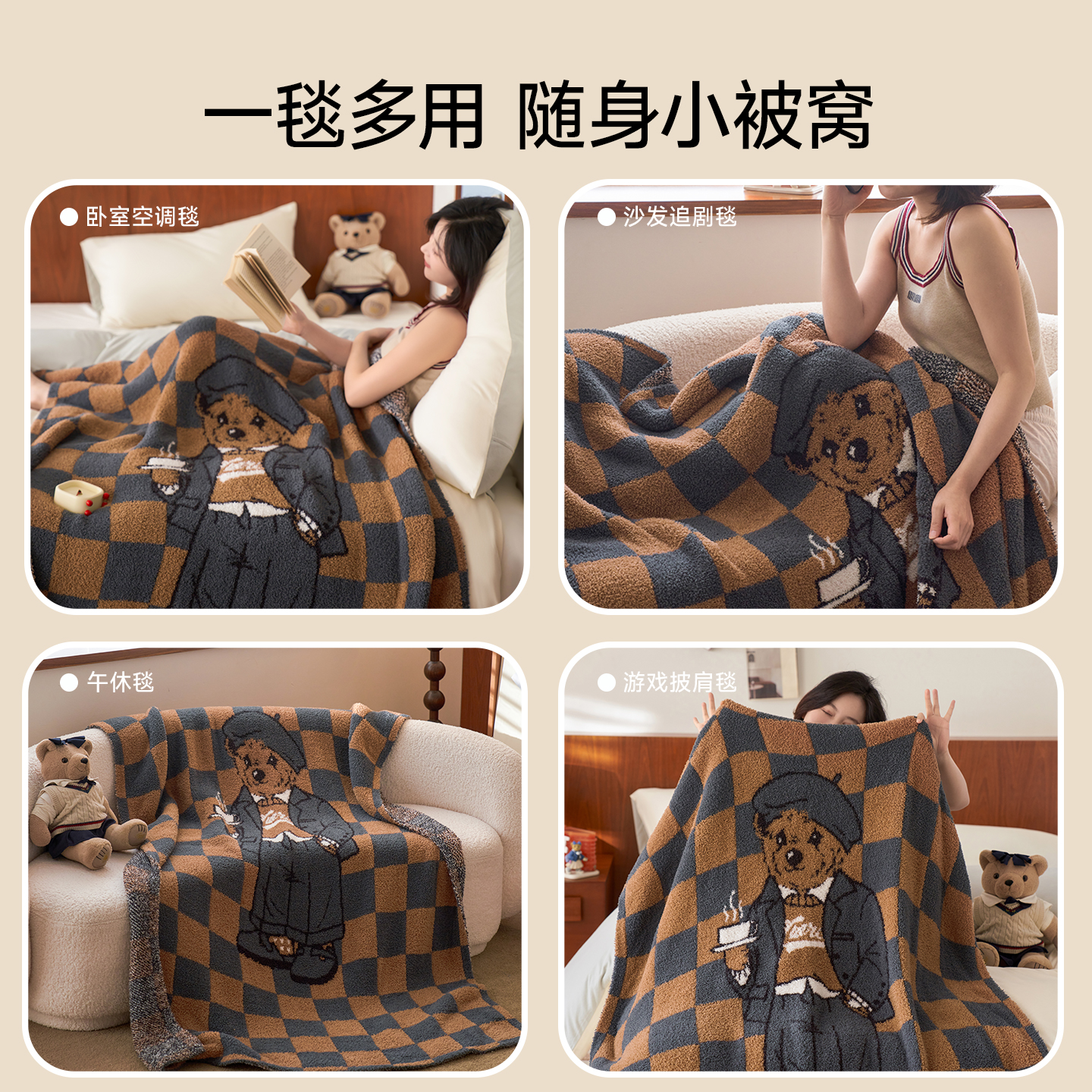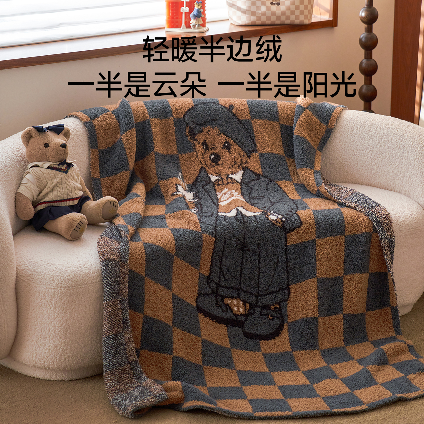 天猫TeenieWeenie小熊泡芙半边绒毛毯冬加厚沙发小毯子办公室午睡盖毯