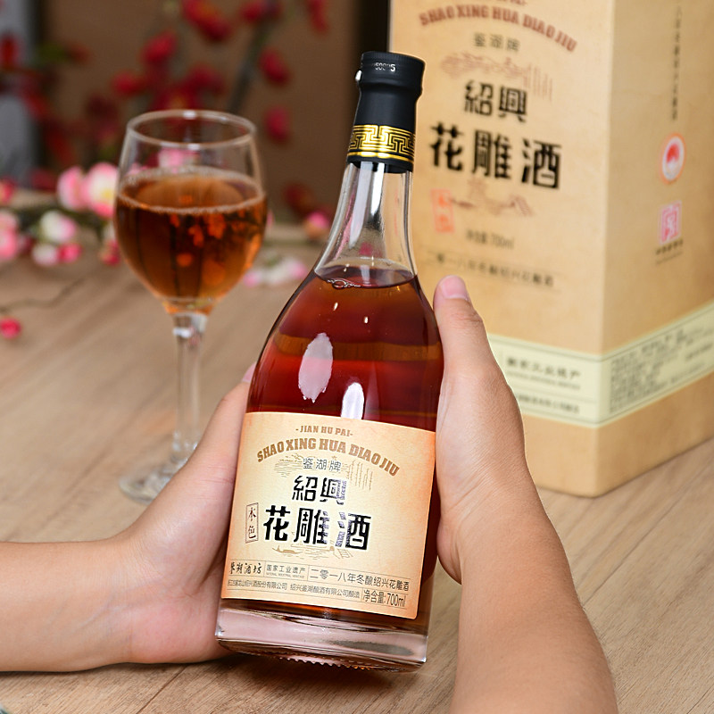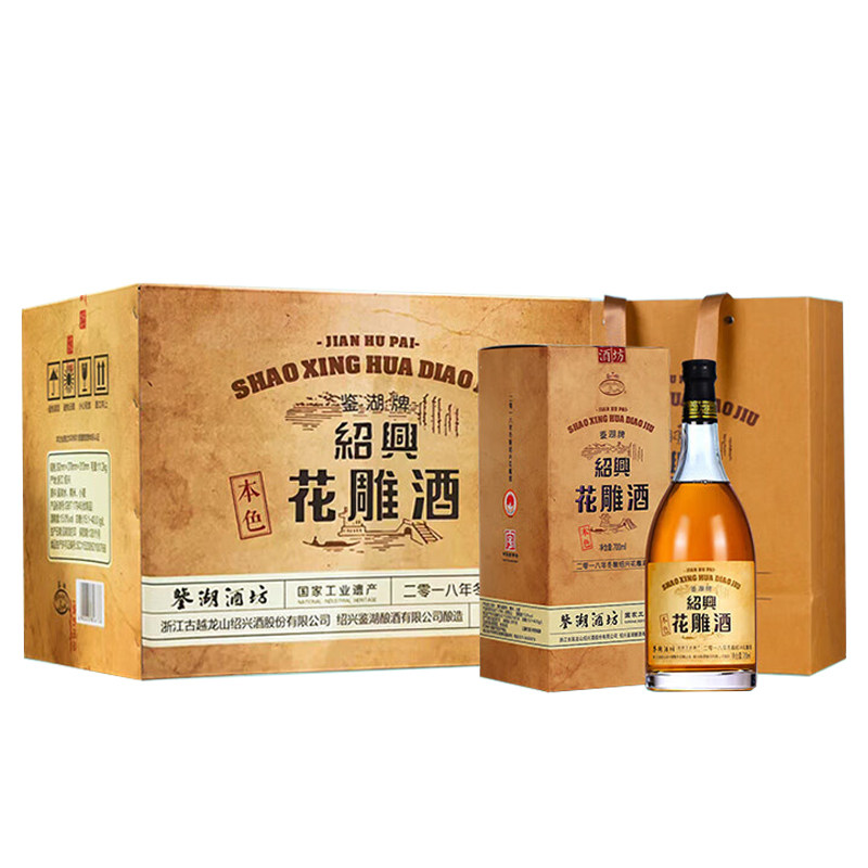 天猫鉴湖牌绍兴黄酒鉴湖酒坊2018年冬酿花雕酒700ml*6瓶半干型无焦糖