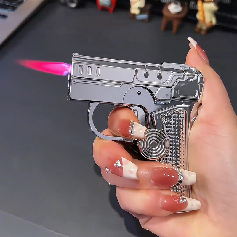 这款新款金属陀螺枪折叠变形旋转解压打火机,集创意、个性与实用于一体,是送给男友的潮流好礼。采用优质金属材质,质感厚重,耐用抗摔。独特陀螺枪造型,可折叠变形,旋转时带来解压乐趣,兼具趣味性与科技感。内置防风设计,火焰稳定,户外使用无忧。充气式燃料补充便捷环保。无论是日常使用还是收藏把玩,都彰显独特品味。炫酷外观搭配精巧工艺,既是实用工具,也是潮流配饰,完美契合追求个性与品质的年轻男性,是表达心意的创意之选。